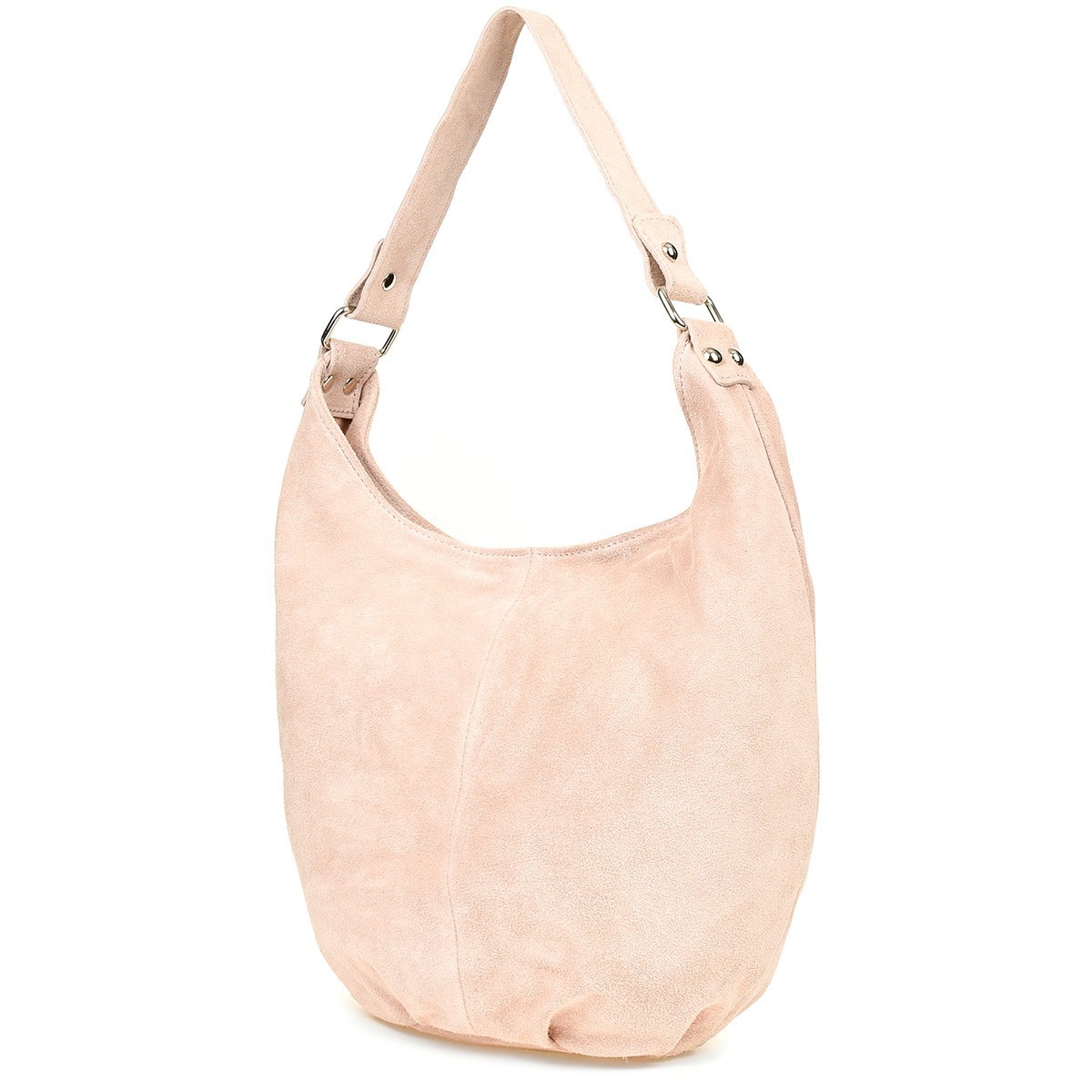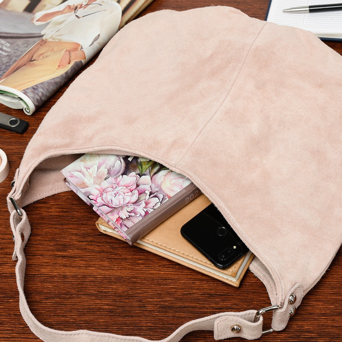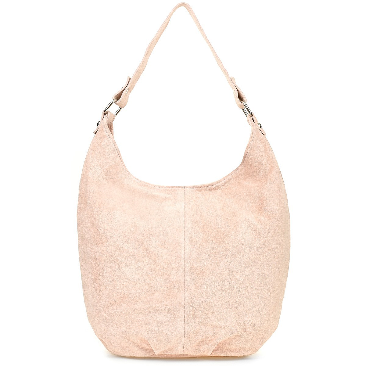 Pudrowa zamszowa torebka damska A4 skórzana worek K50