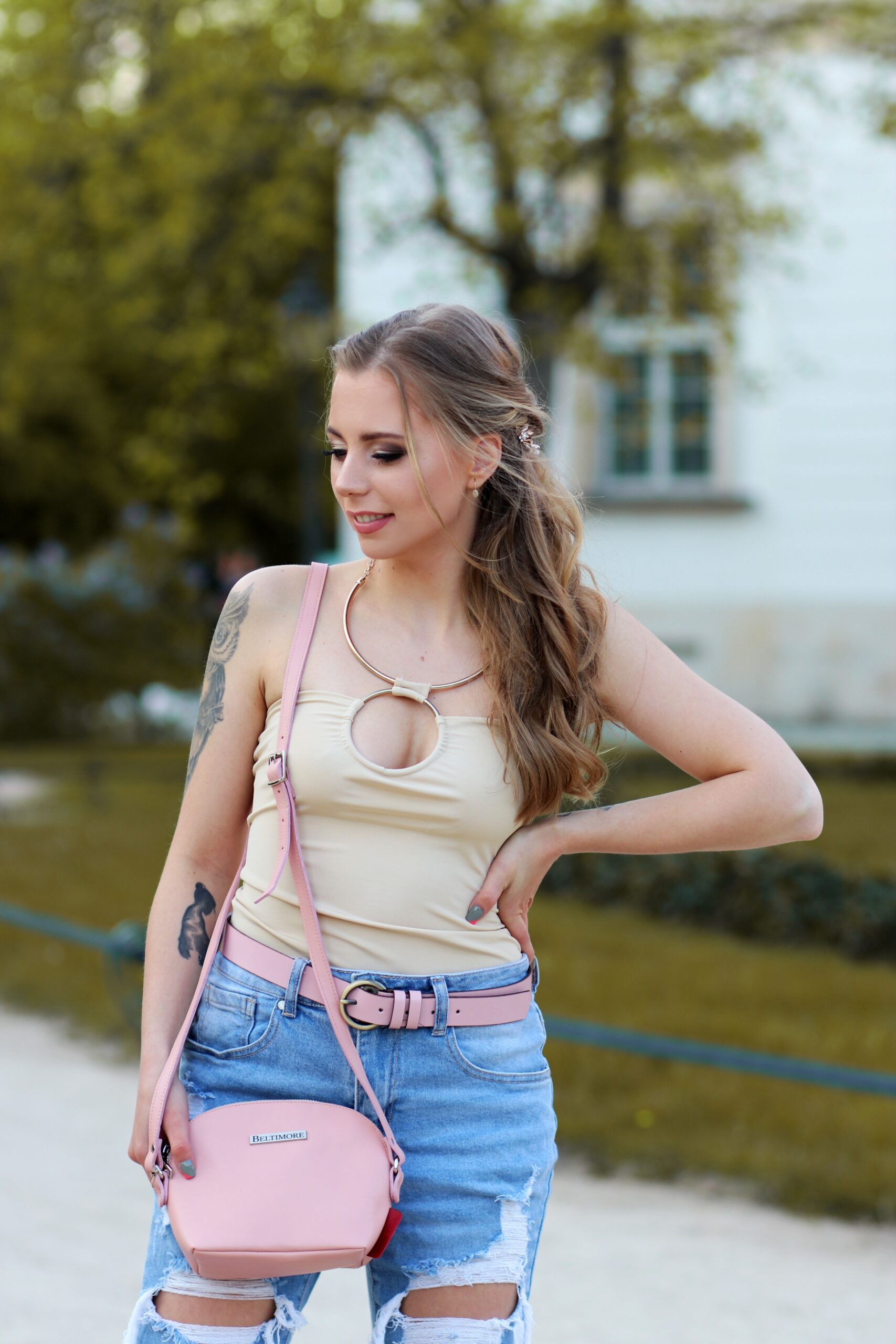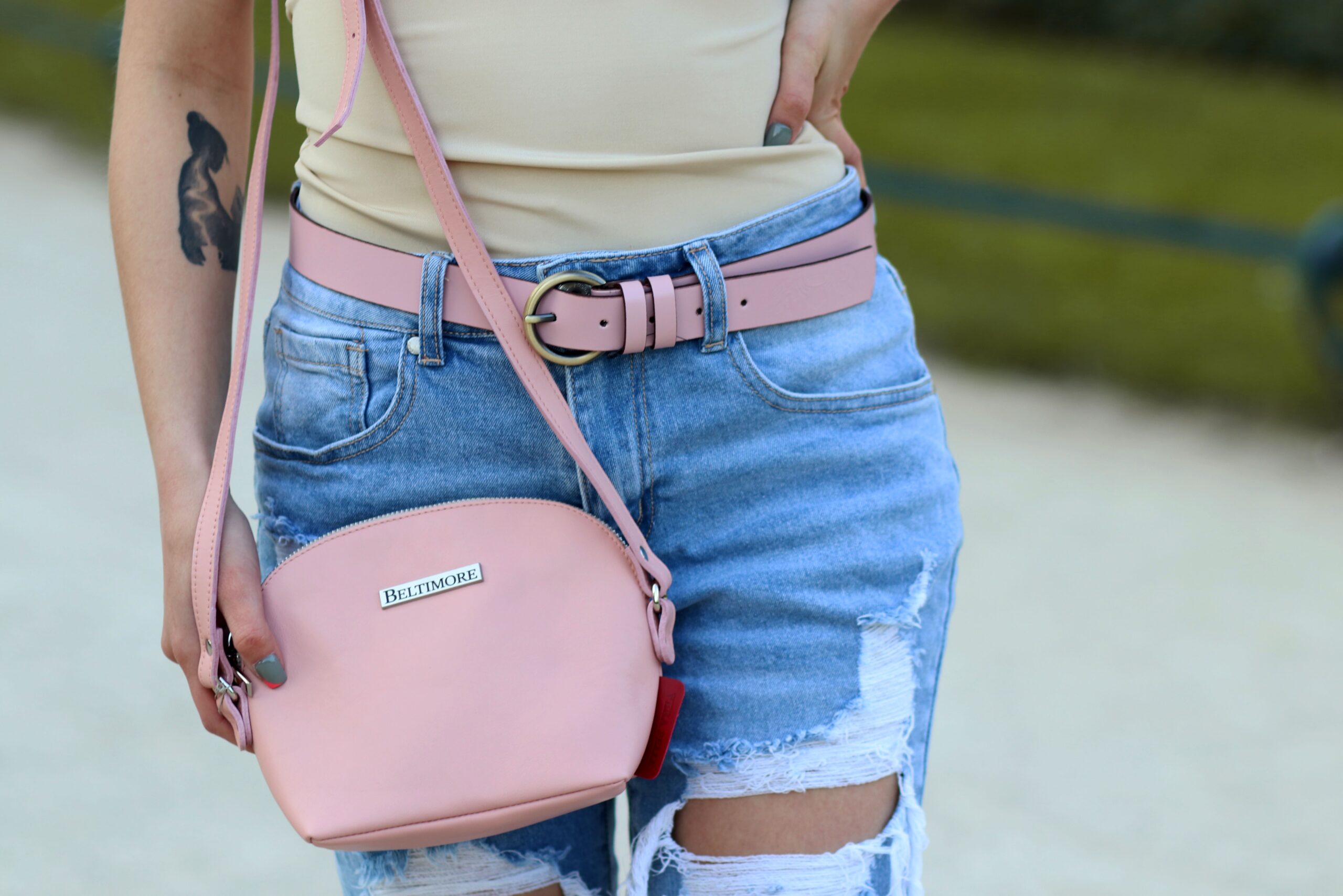 Pudrowo- różowa mała damska torebka skórzana pasek Beltimore N22
