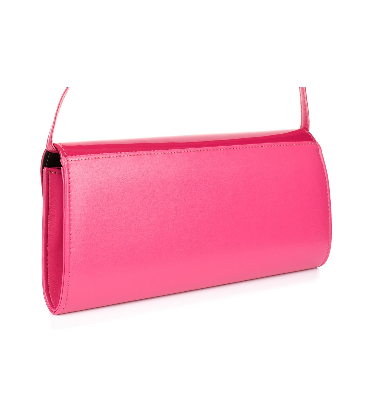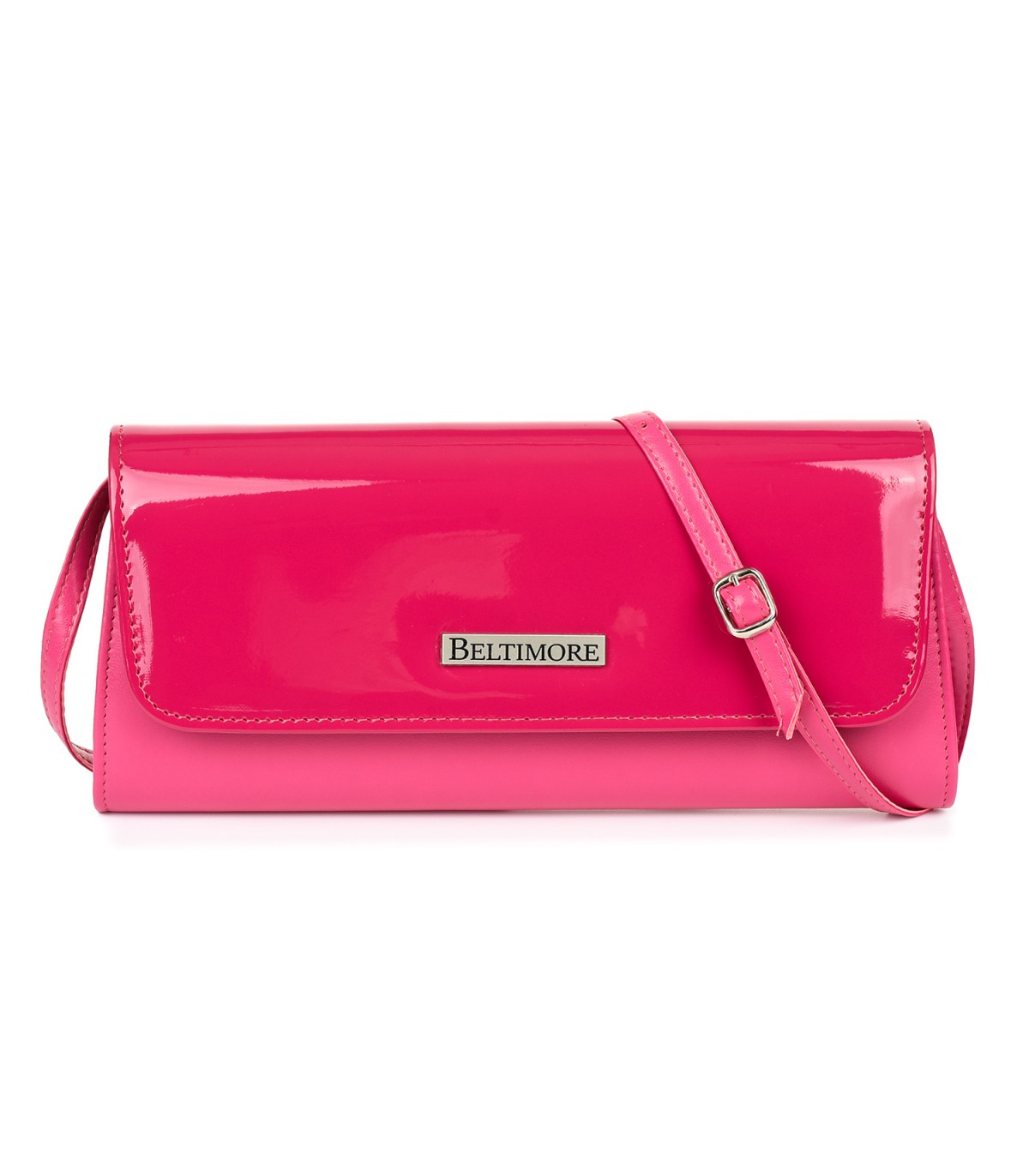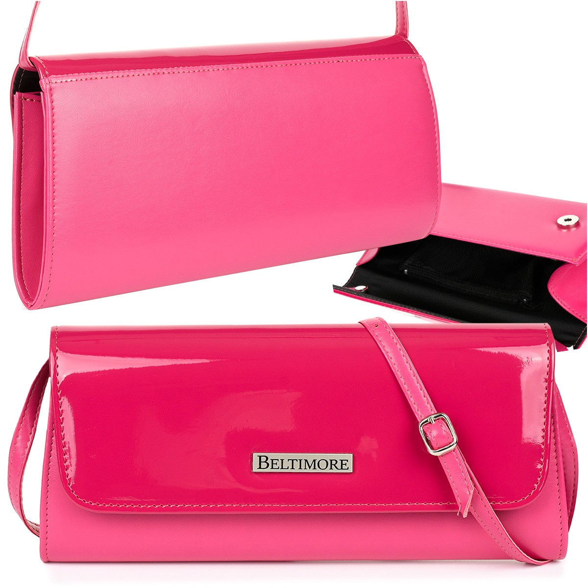 Torebka jest w połowie lakierowa i matowa w kolorze różowym, front torebki zdobi delikatne logo polskiej marki BELTIMORE.