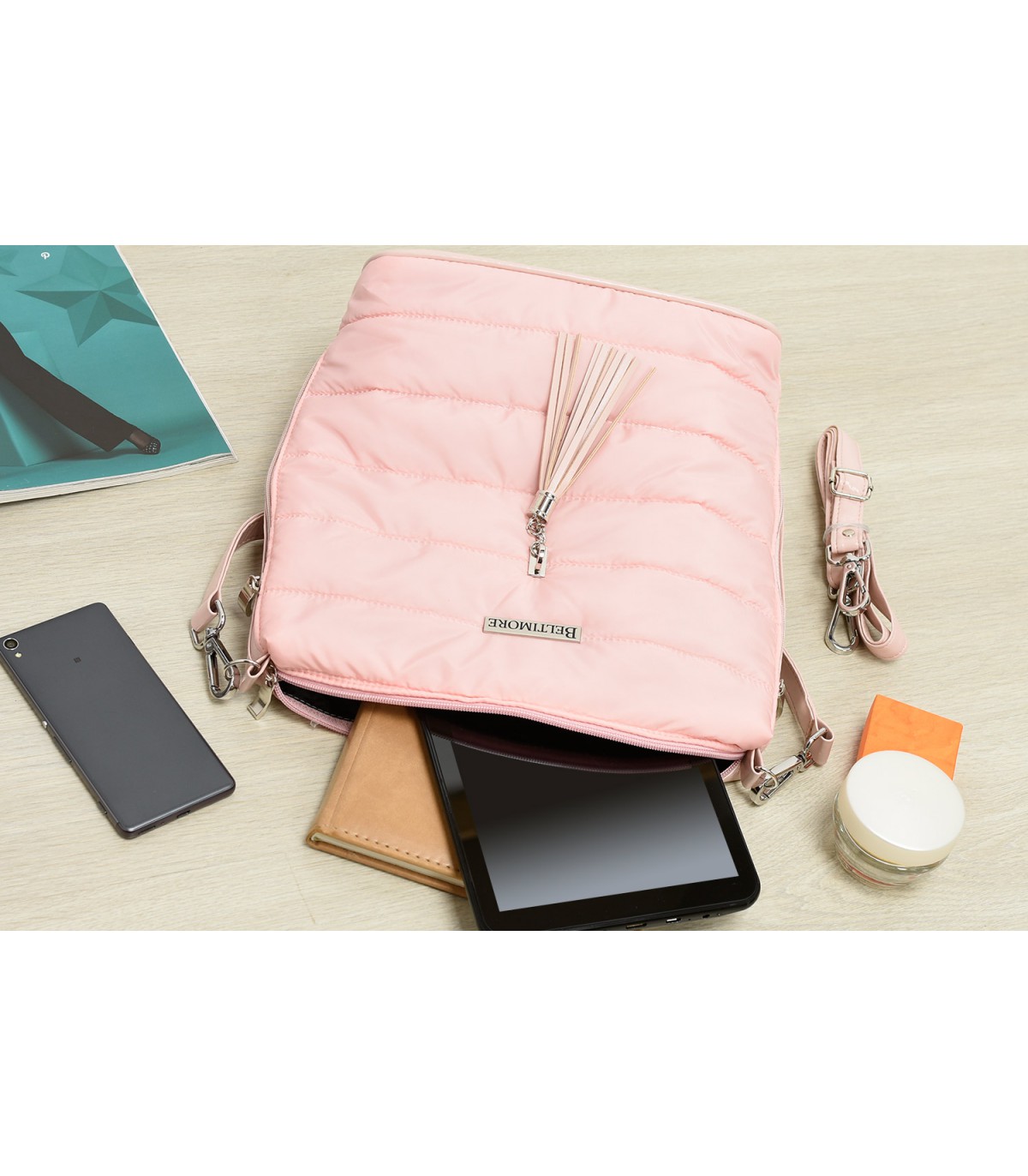 Różowa torebka, pikowana torebka damska, solidna i pojemna shopperka, miękka torebka damska Beltimore W91