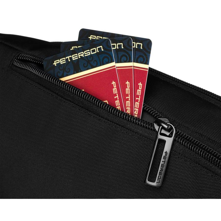 • Codzienna wygoda w małej formie – Saszetka nerka Peterson® w klasycznym czarnym kolorze, idealna do noszenia na co dzień i podczas wyjazdów.
