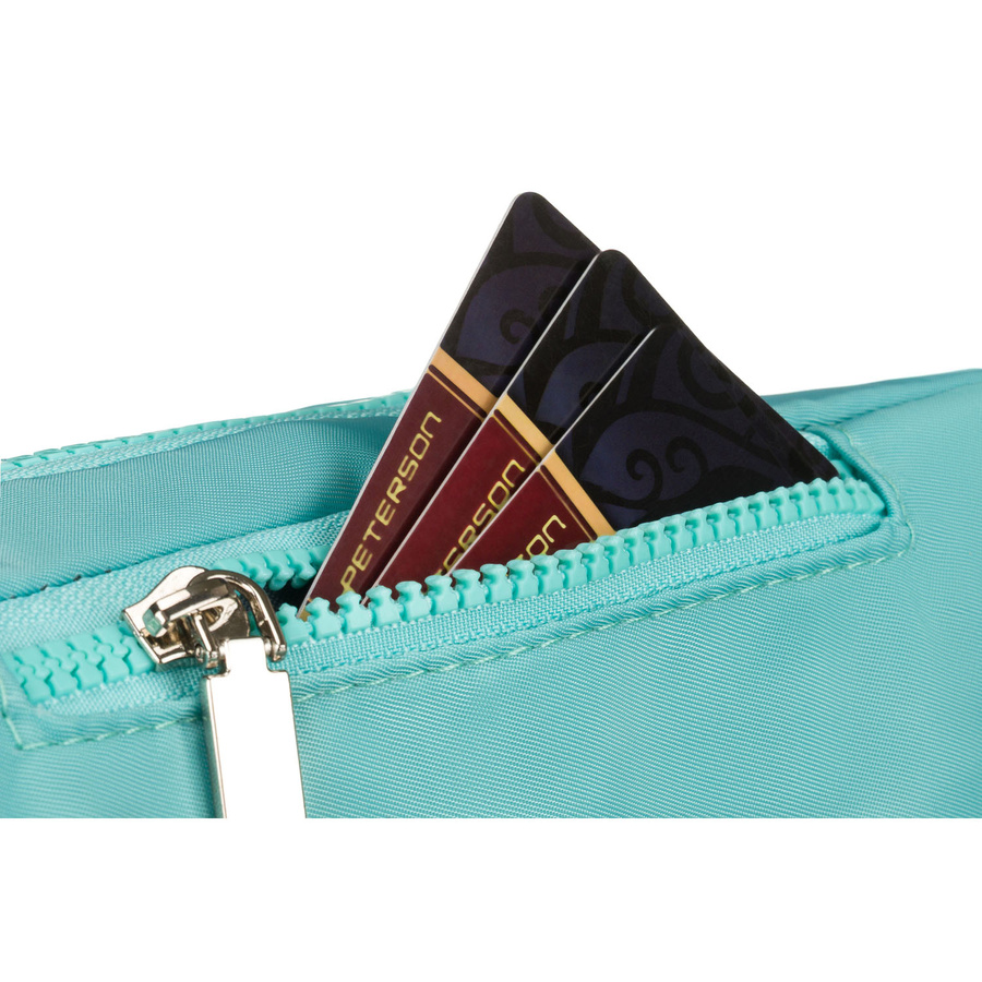 Saszetka sportowa wykonana z poliestru w miętowym kolorze, zamykana na suwak – Peterson