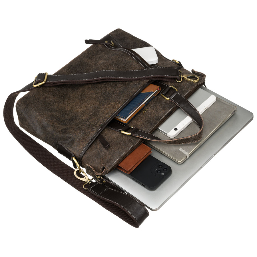 Skórzana, brązowa torba męska na dokumenty z miejscem na laptopa – Peterson