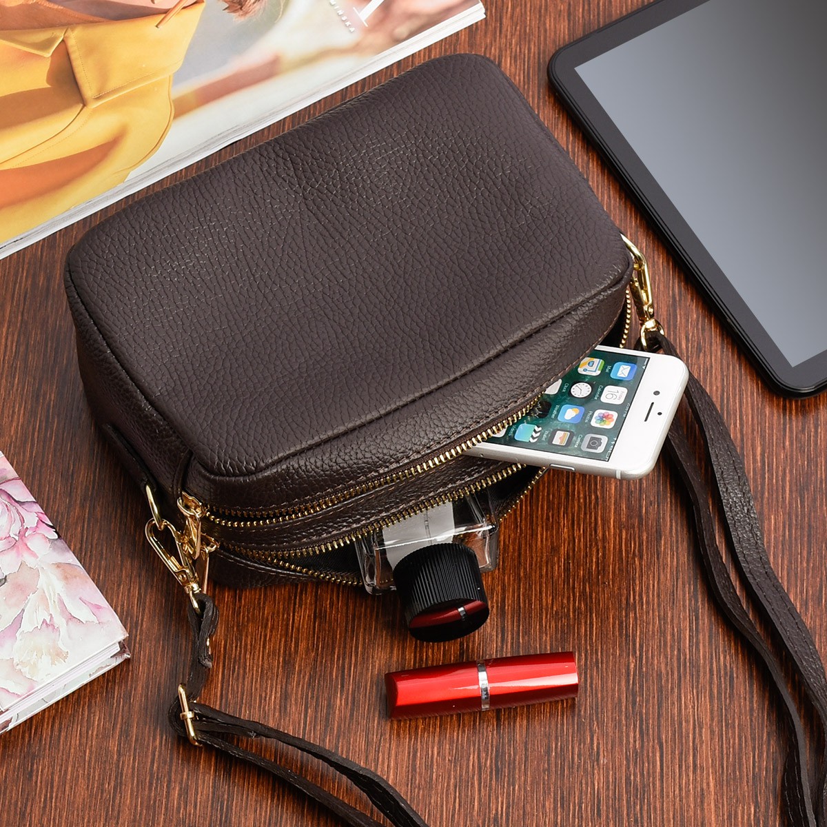 Dwukomorowa: Dwukomorowa konstrukcja oznacza, że torebka ma dwie główne przegrody, co ułatwia organizację i separację różnych rzeczy, takich jak portfel, telefon, klucze i inne drobiazgi.