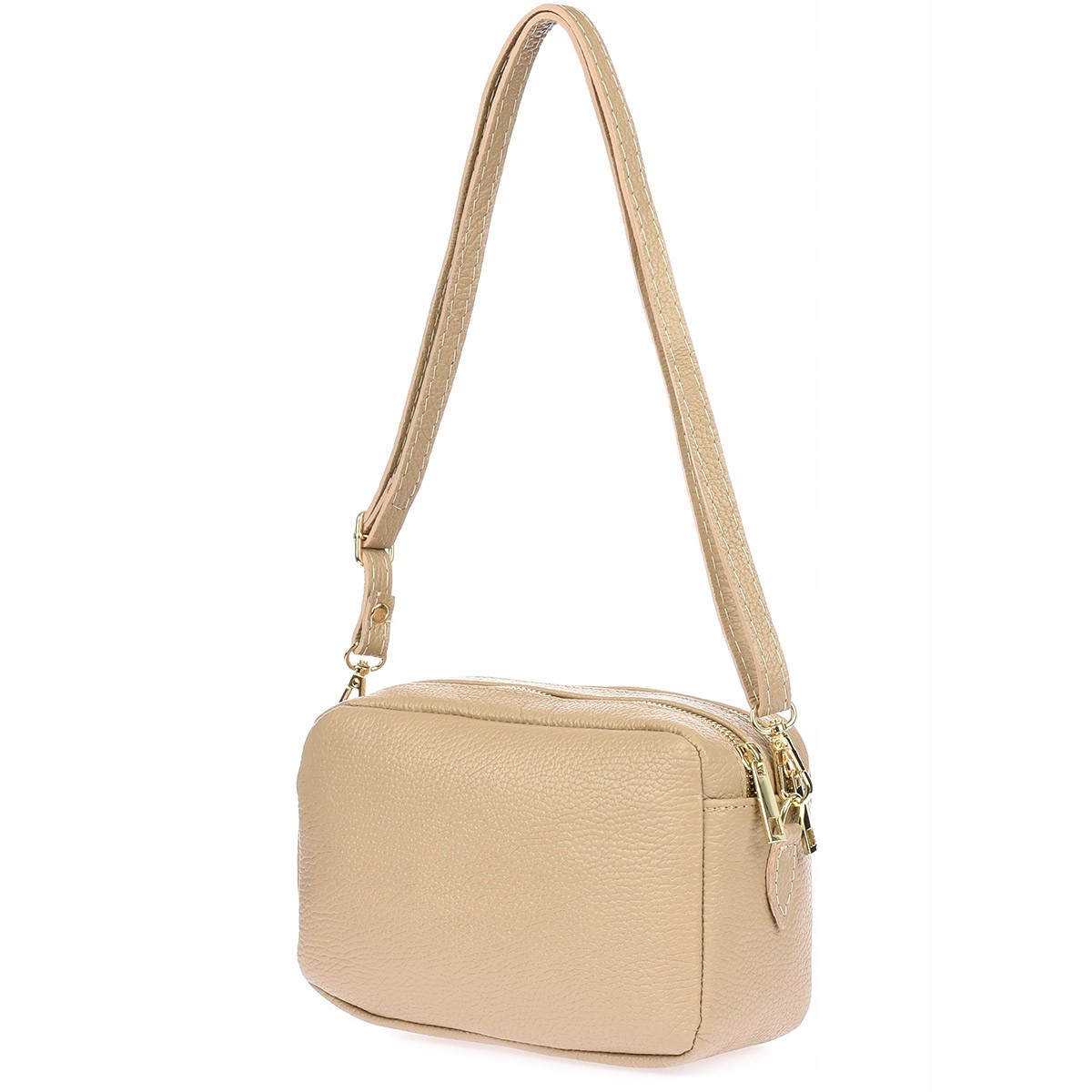 Skórzana damska torebka listonoszka beżowa dwukomorowa. Tego rodzaju torebki są popularne ze względu na swój funkcjonalny design, który umożliwia przechowywanie niezbędnych rzeczy w porządku. Oto kilka ważnych cech tej torebki: