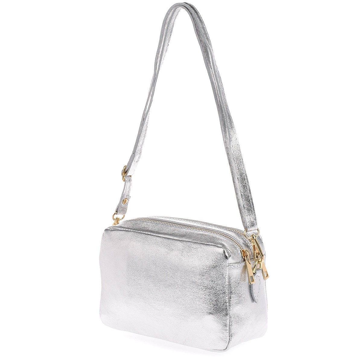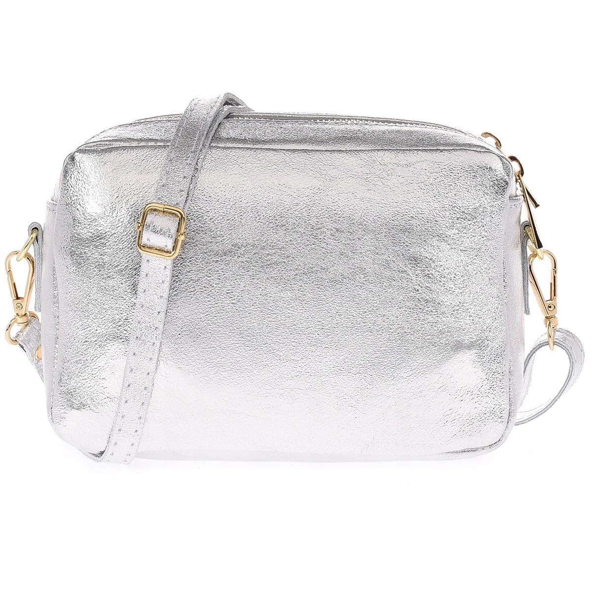 Skórzana damska torebka listonoszka srebrna dwukomorowa. Tego rodzaju torebki są popularne ze względu na swój funkcjonalny design, który umożliwia przechowywanie niezbędnych rzeczy w porządku. Oto kilka ważnych cech tej torebki: