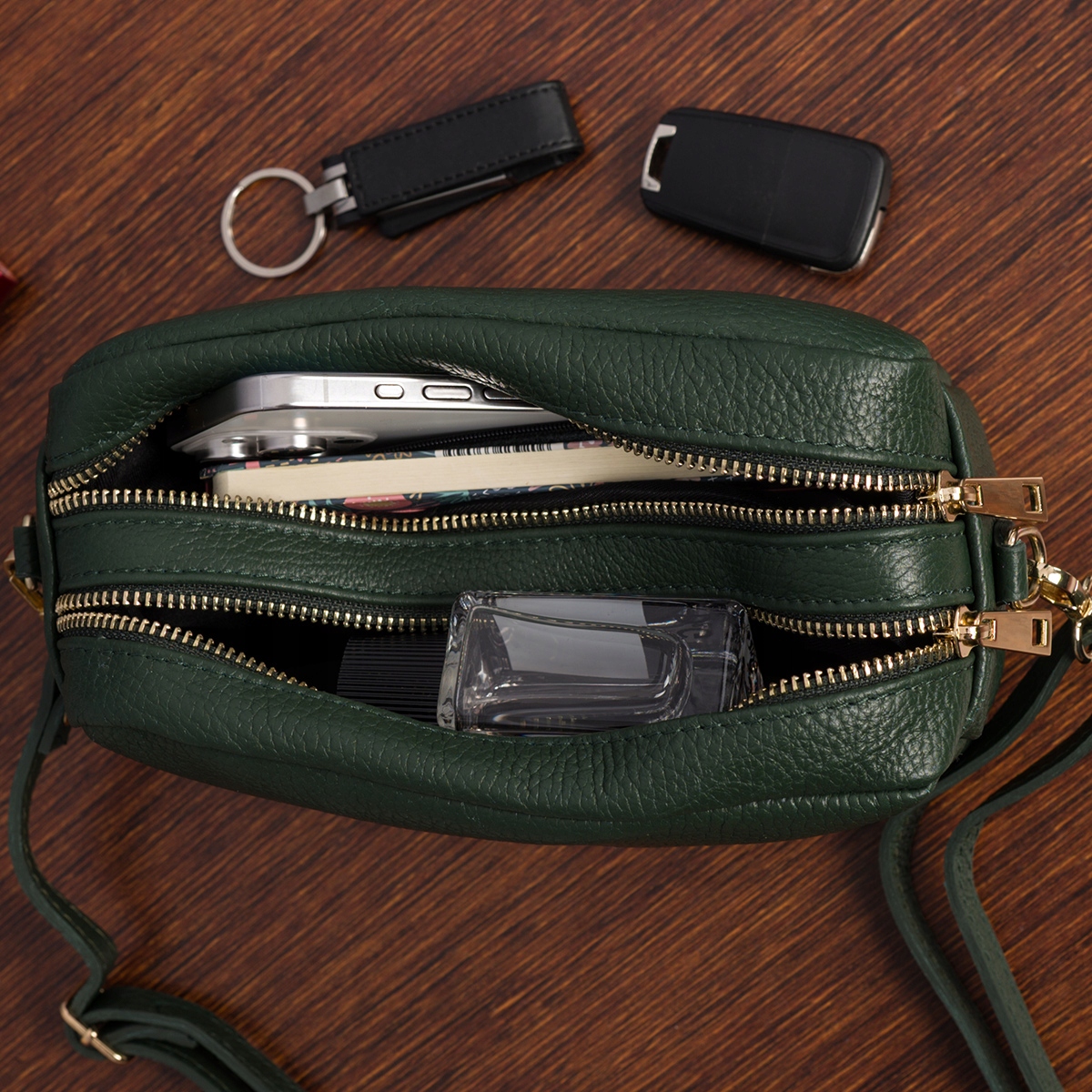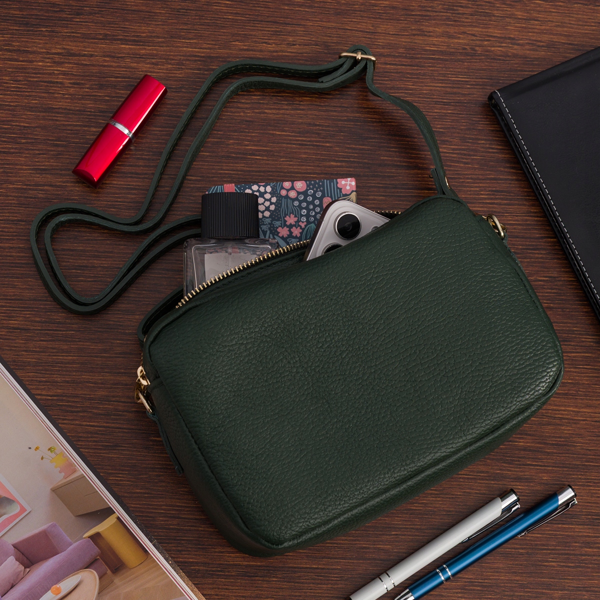 Kolor: ciemno zielony, kolor torebki jest neutralny dzięki czemu pasuje do wielu stylizacji, zarówno na co dzień, jak i na specjalne okazje.