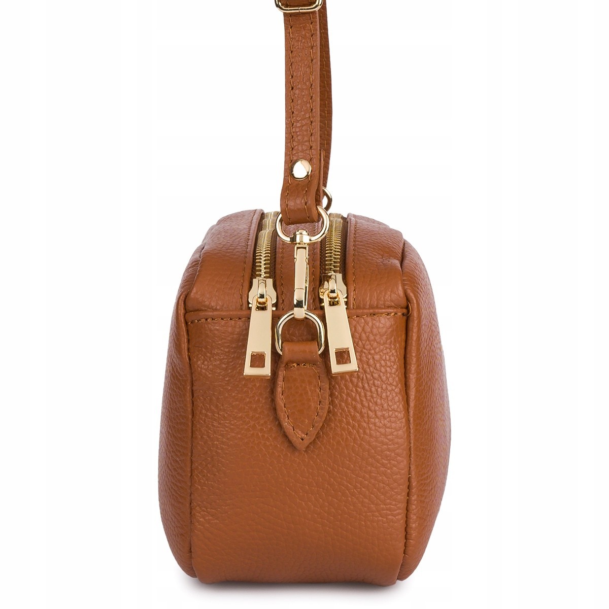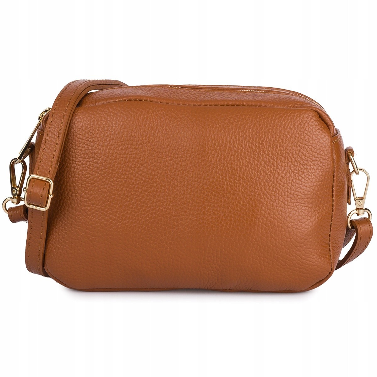 Skórzana damska torebka listonoszka pojemna złota dwukomorowa Vera Pelle