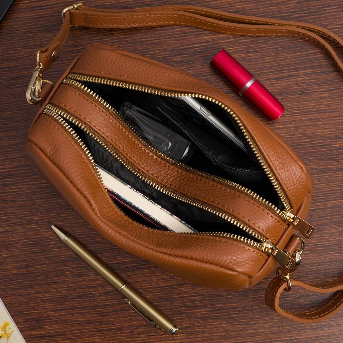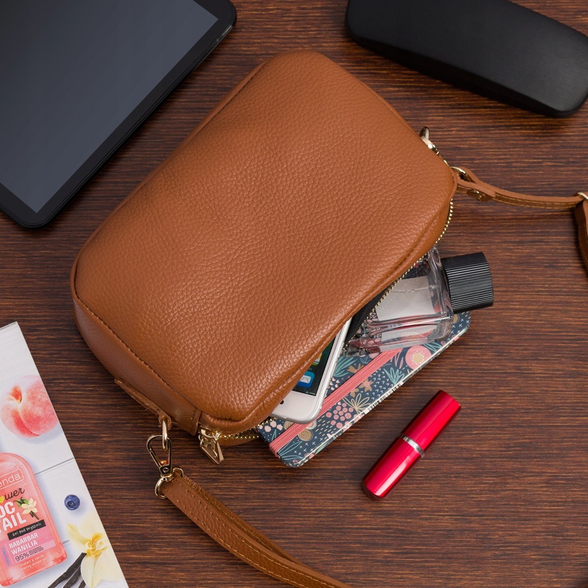 Dwukomorowa: Dwukomorowa konstrukcja oznacza, że torebka ma dwie główne przegrody, co ułatwia organizację i separację różnych rzeczy, takich jak portfel, telefon, klucze i inne drobiazgi.