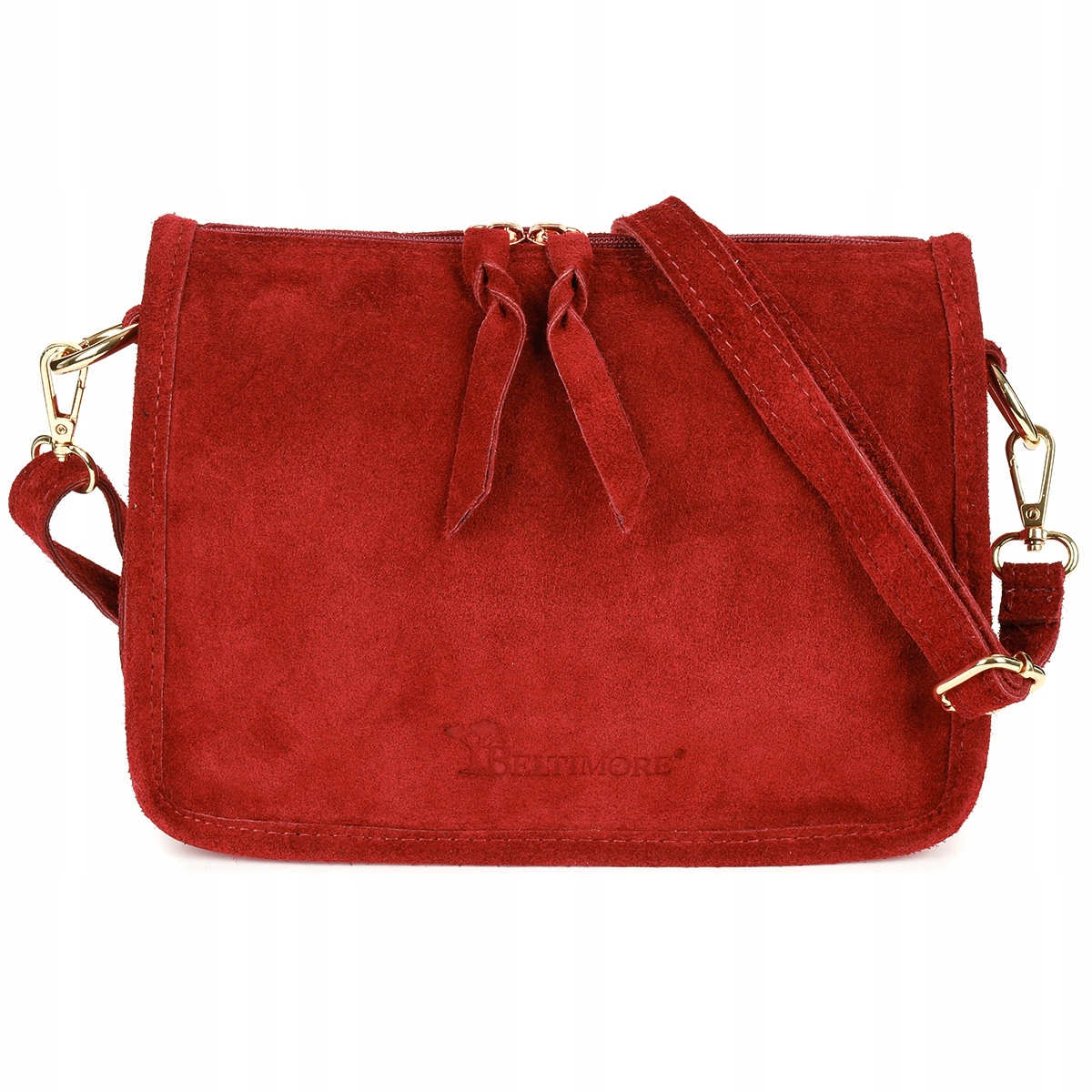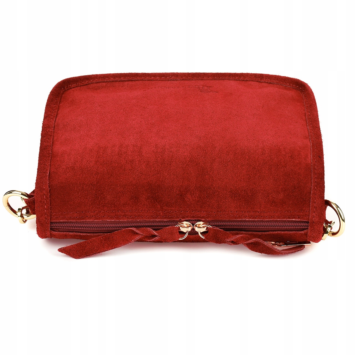 Skórzana listonoszka damska włoska zamszowa kuferek czerwona Beltimore B64