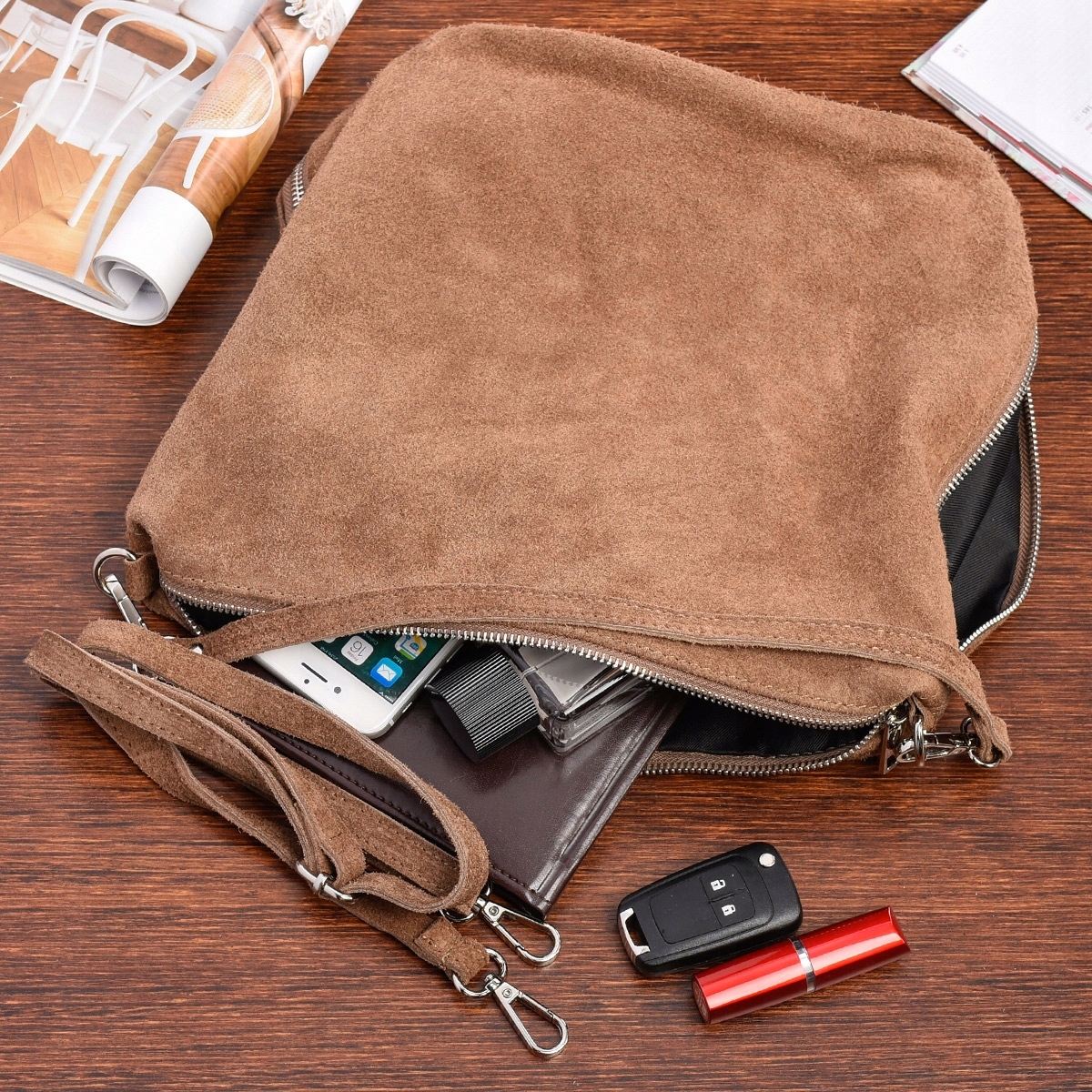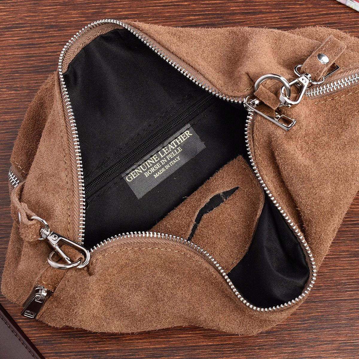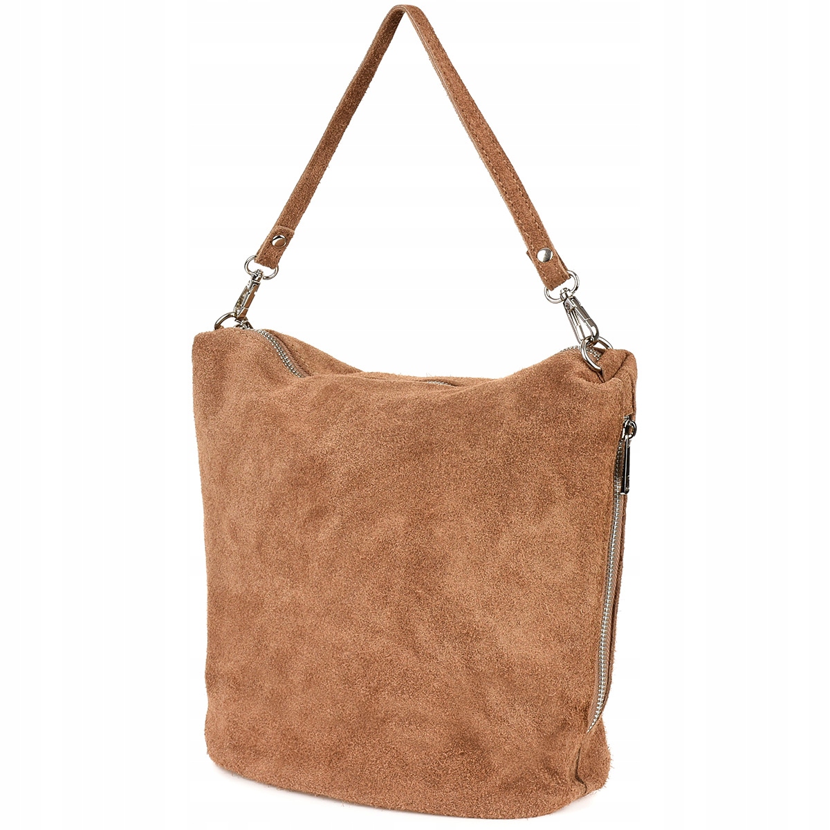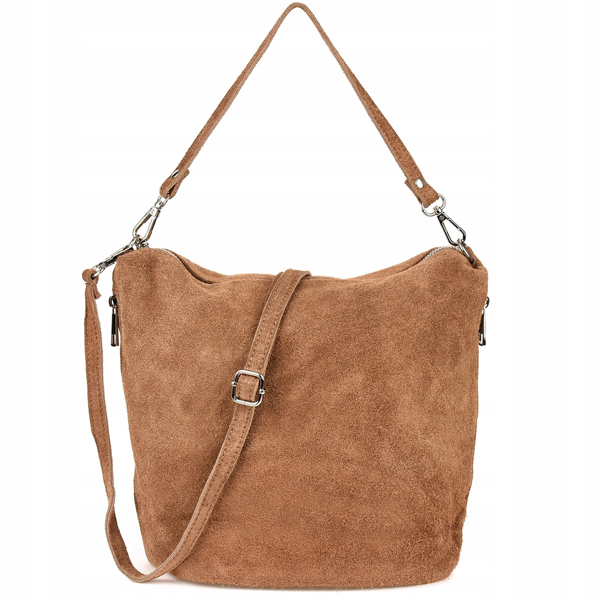 Torebka Listonoszka Skórzana damska suwaki pojemna włoska skóra zamszowa