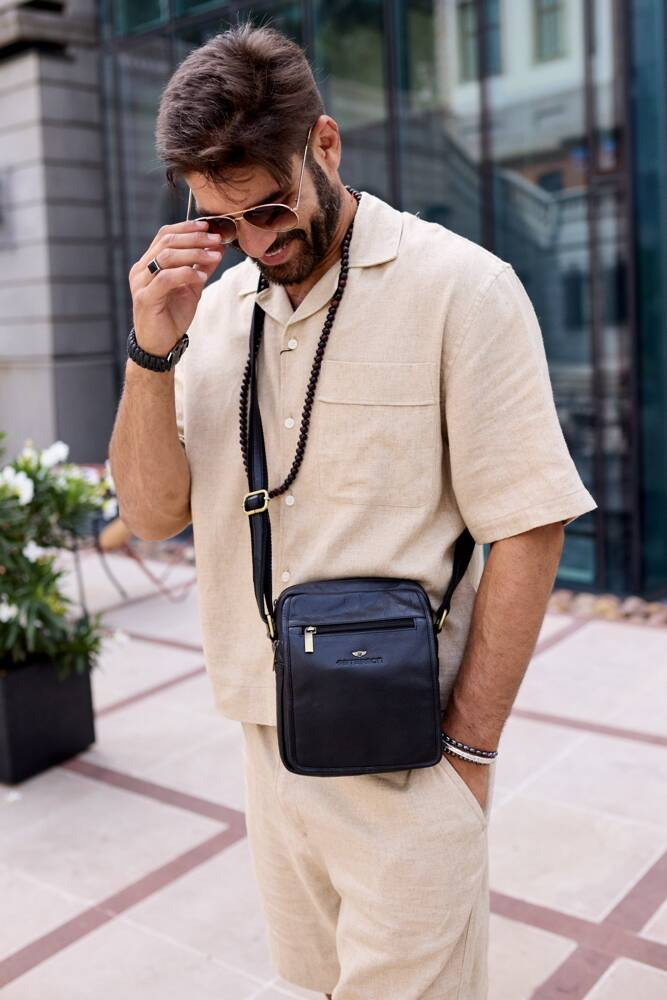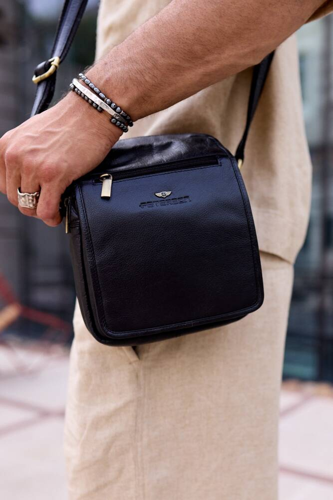 Skórzana listonoszka męska z kieszonkami – Peterson