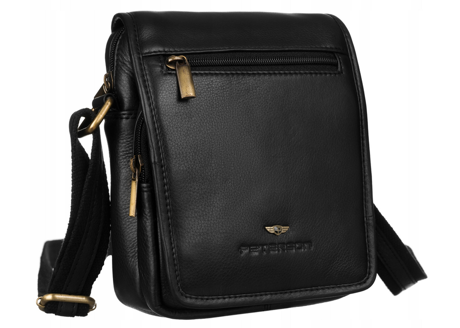 Skórzana listonoszka męska z zewnętrzną kieszenią na suwak — PetersonSkórzana listonoszka męska z zewnętrzną kieszenią na suwak — Peterson