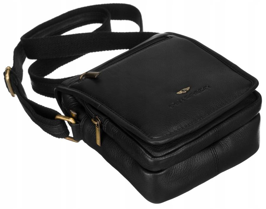 Skórzana listonoszka męska z zewnętrzną kieszenią na suwak — Peterson