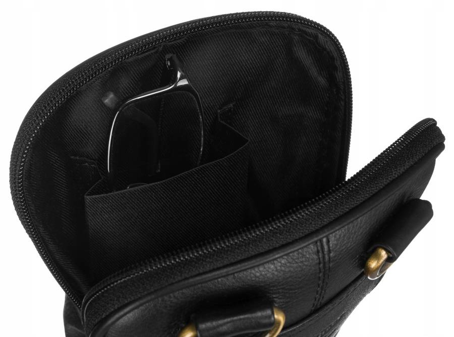 • Klasyczny design | Saszetka zamykana zamkiem błyskawicznym. Wszystkie okucia w torebce mają piękny kolor starego złota, co tworzy świetny kontrast dla czarnego koloru skóry