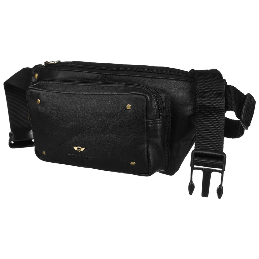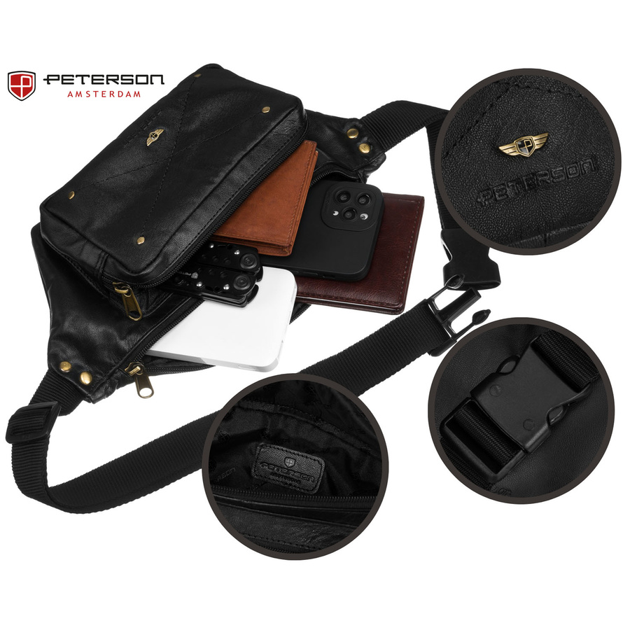 Skórzana nerka męska w czarnym kolorze zamykana na suwak - PetersonSkórzana nerka męska w czarnym kolorze zamykana na suwak – Peterson
