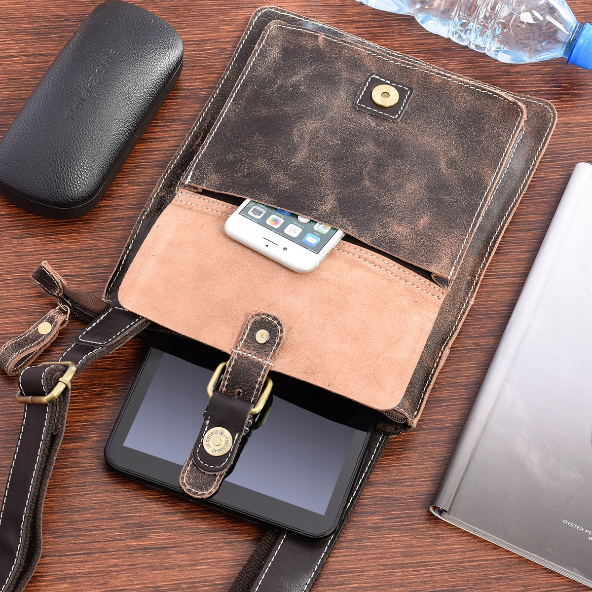 Skórzana torba męska na ramię konduktorka premium