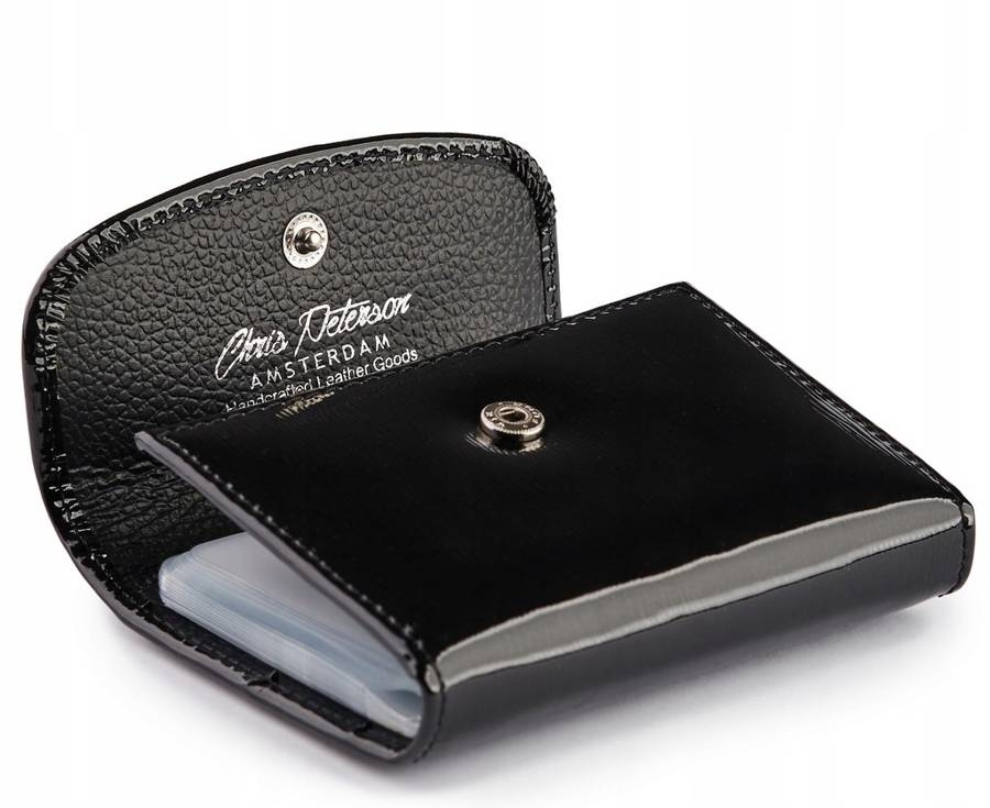 Wygodne i zgrabne etui na wizytówki i karty płatnicze, bardzo starannie wykonane z doskonałej jakości naturalnej skóry lakierowanej. Wykończone i polerowane ręcznie.