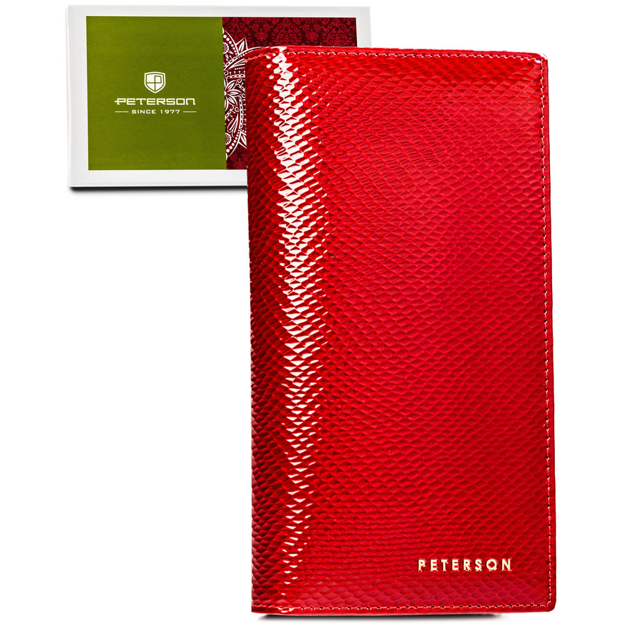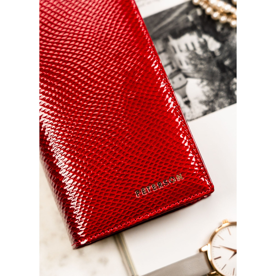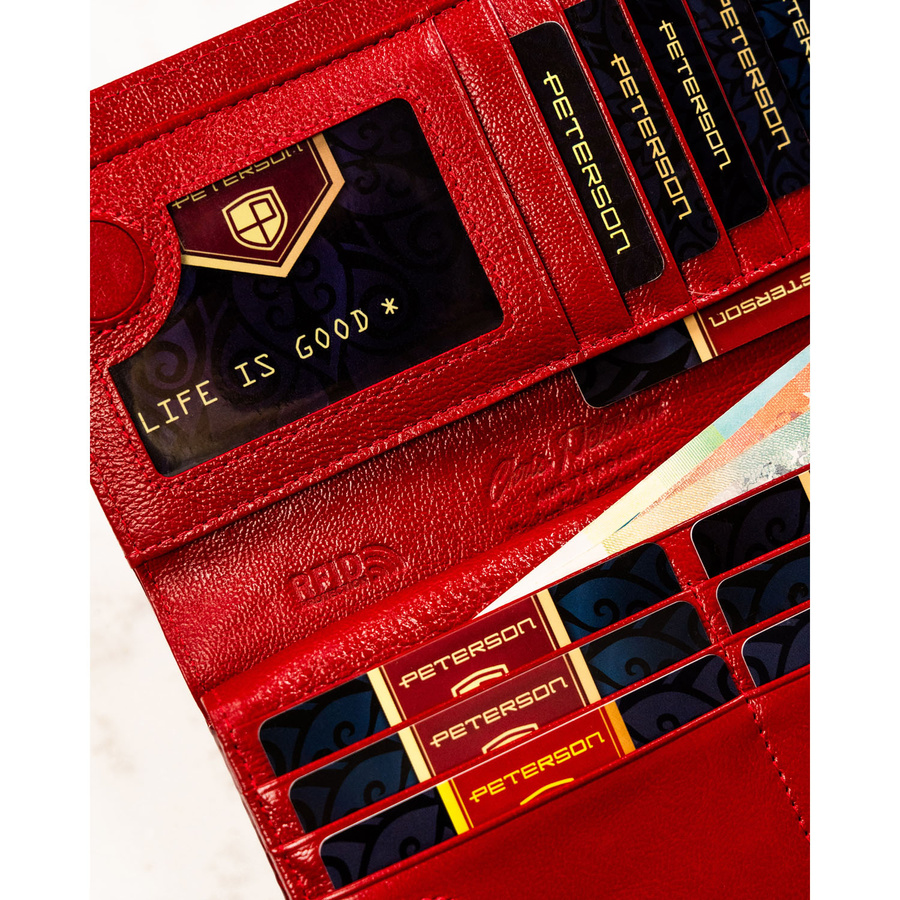 Skórzany, czerwony portfel damski na magnes i zamek z systemem RFID – Peterson