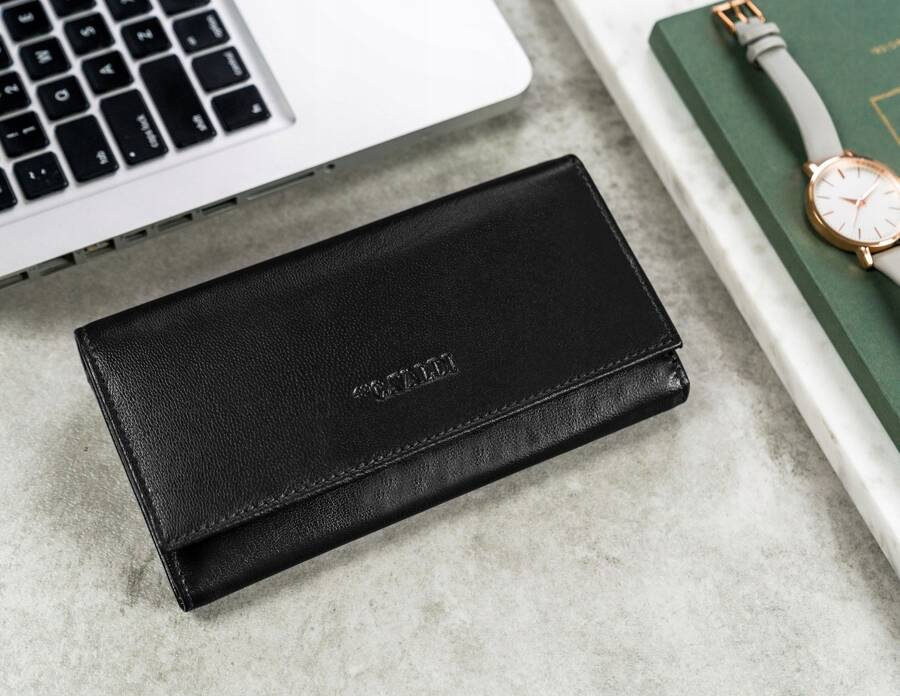Skórzany, damski portfel na zatrzask z systemem RFID – Cavaldi