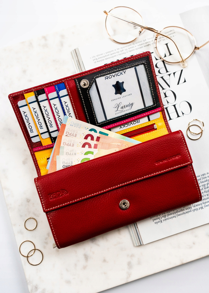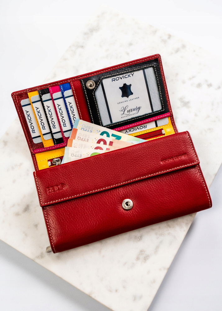 Skórzany, duży portfel damski na zatrzask – Rovicky