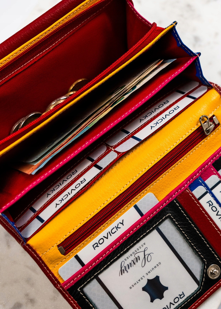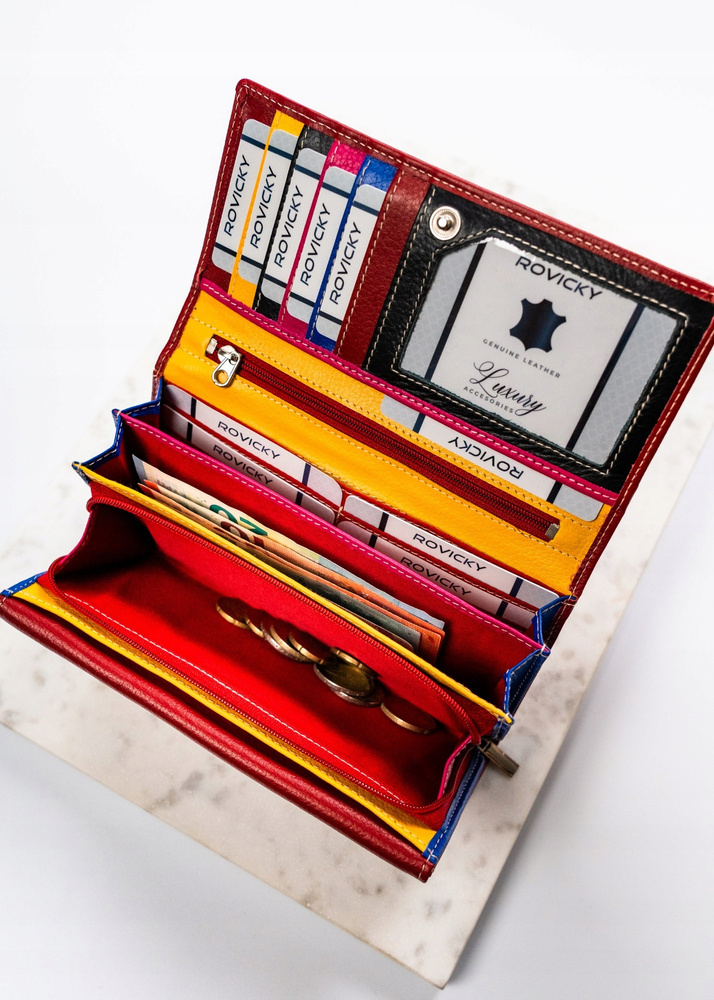 Portfel Rovicky® oferuje rozbudowane wnętrze, które zaspokoi potrzeby każdego użytkownika dzięki swojej pojemności. Zawiera ono: