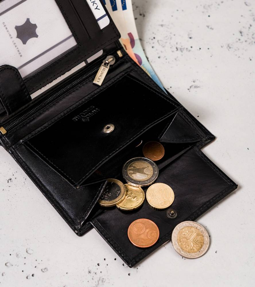 W portfelu jest 1 kieszeń, w której schowasz bilon. Kieszeń jest dosyć pojemna i zapinana na solidny zatrzask.