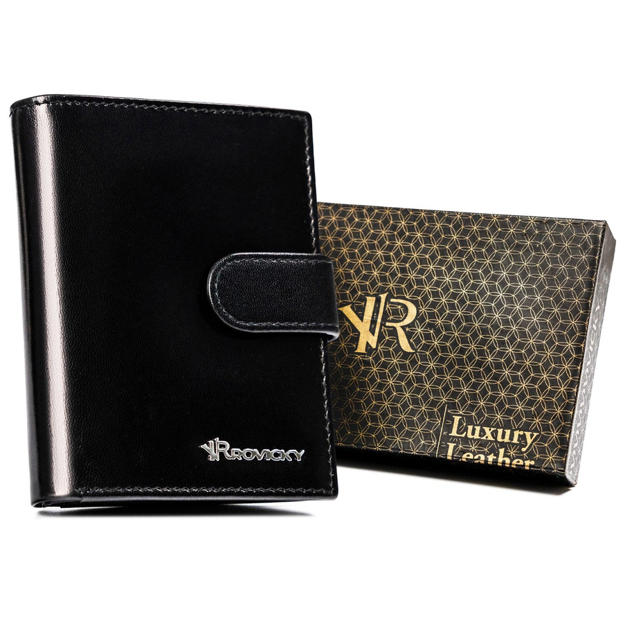- Klasyczny design | Model w orientacji pionowej zapinany na zatrzask. Klasyczny czarny kolor z subtelnym logo Rovicky® oraz srebrnymi okuciami;