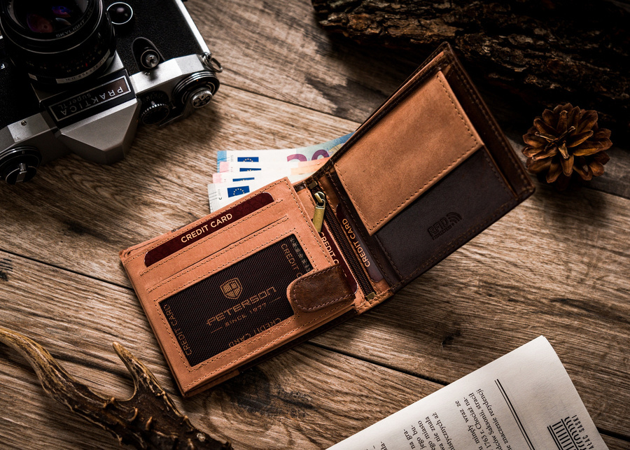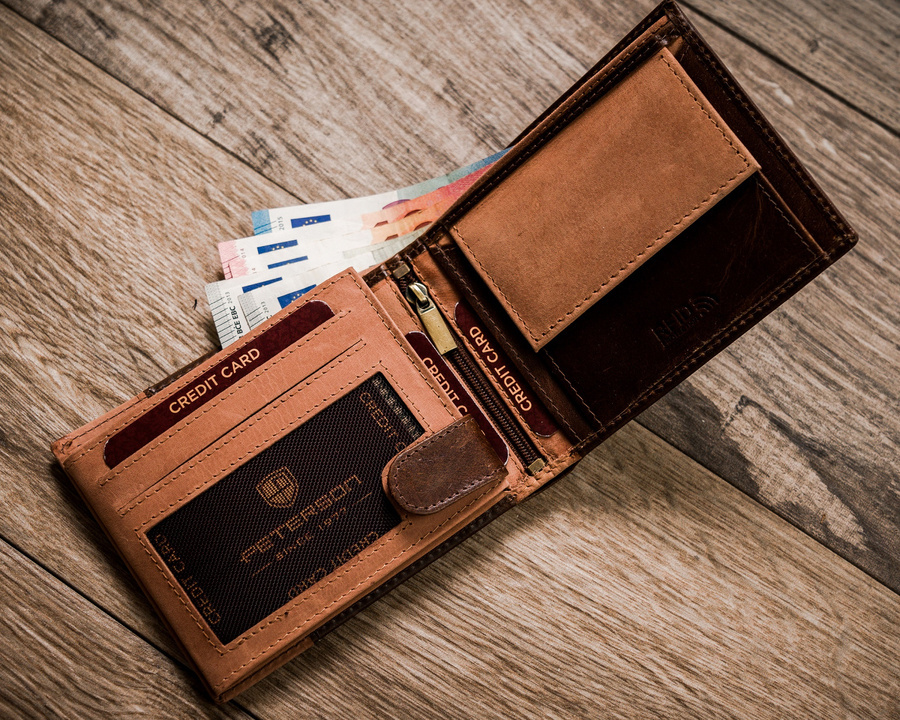 Podwójna kieszeń na banknoty jest przydatna dla Mężczyzny, który korzysta z dwóch walut.