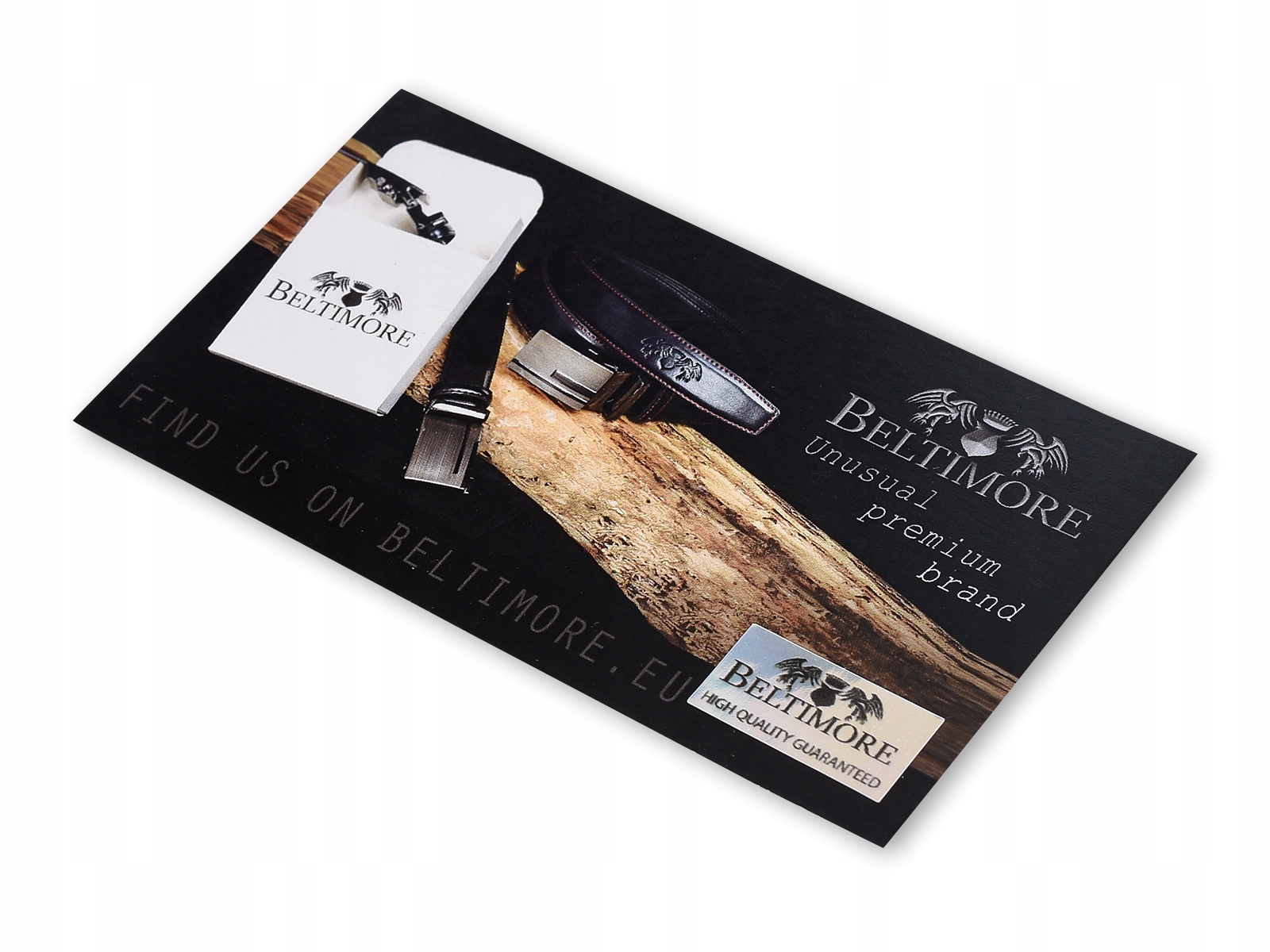Beltimore to marka działająca na rynku europejskim, oferująca głównie paski skórzane i parciane oraz dodatki galanteryjne. Do każdego produktu dodajemy oryginalne pudełko ekologiczne asygnowane logiem marki. Wraz z paskiem dołączamy również wizytówkę producenta zabezpieczoną hologramem.