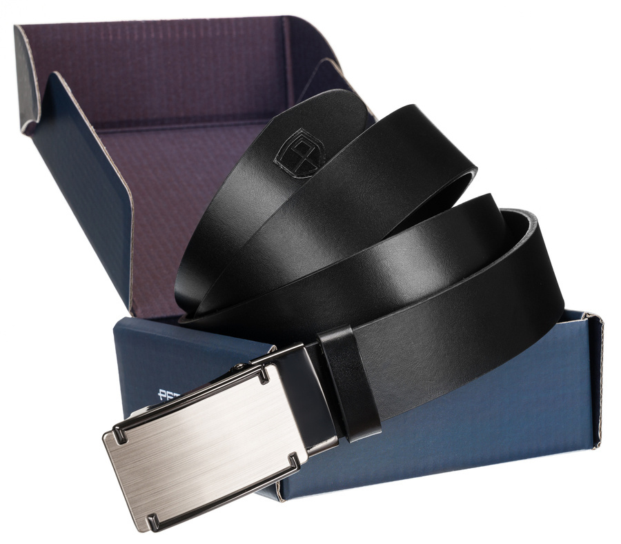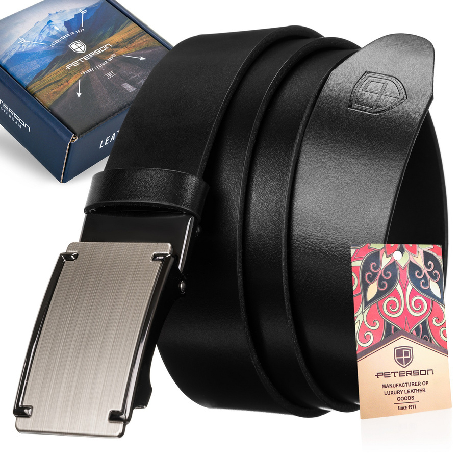 Skórzany pasek męski z elegancką automatyczną klamrą - PetersonSkórzany pasek męski z elegancką automatyczną klamrą – Peterson