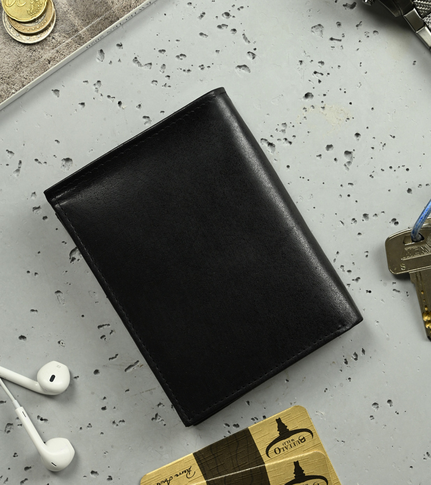 Stylowy męski portfel o klasycznym, ponadczasowym fasonie. Niezwykle pojemny i funkcjonalny – model dla najbardziej wymagających Klientów. Czerń to kolor, który nigdy się nie znudzi, ani nie wyjdzie z mody – kolor, z którym zawsze będziesz czuł się dobrze!