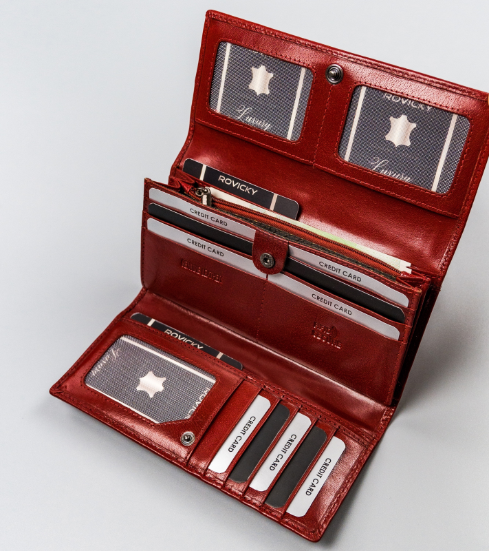 Skórzany portfel damski na karty z ochroną RFID Protect – Rovicky