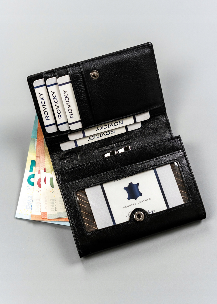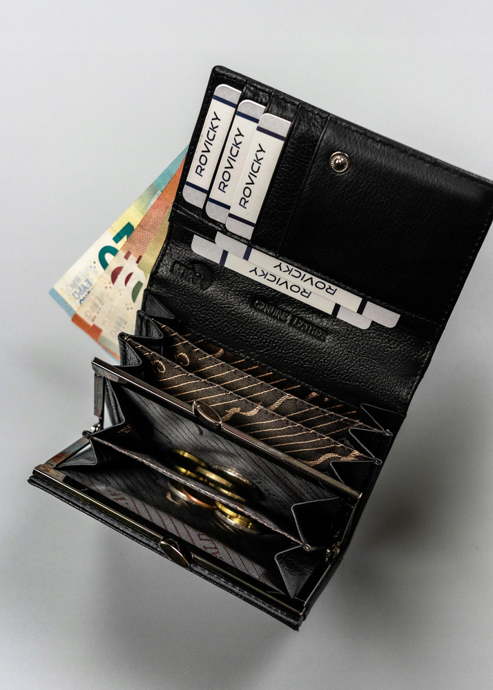 - na banknoty wydzielone są aż 3 pojemne przegródki, w których możesz pogrupować banknoty ze względu na różne nominały lub różne waluty.