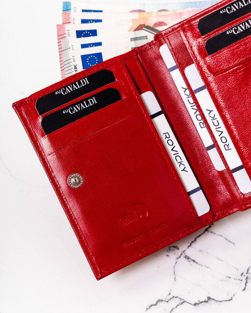 - Ochrona kart na najwyższym poziomie | Wyposażony w system RFID, który zabezpiecza kartę w portfelu przed kradzieżą środków z konta.