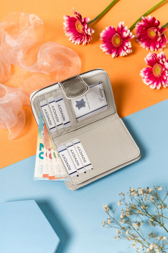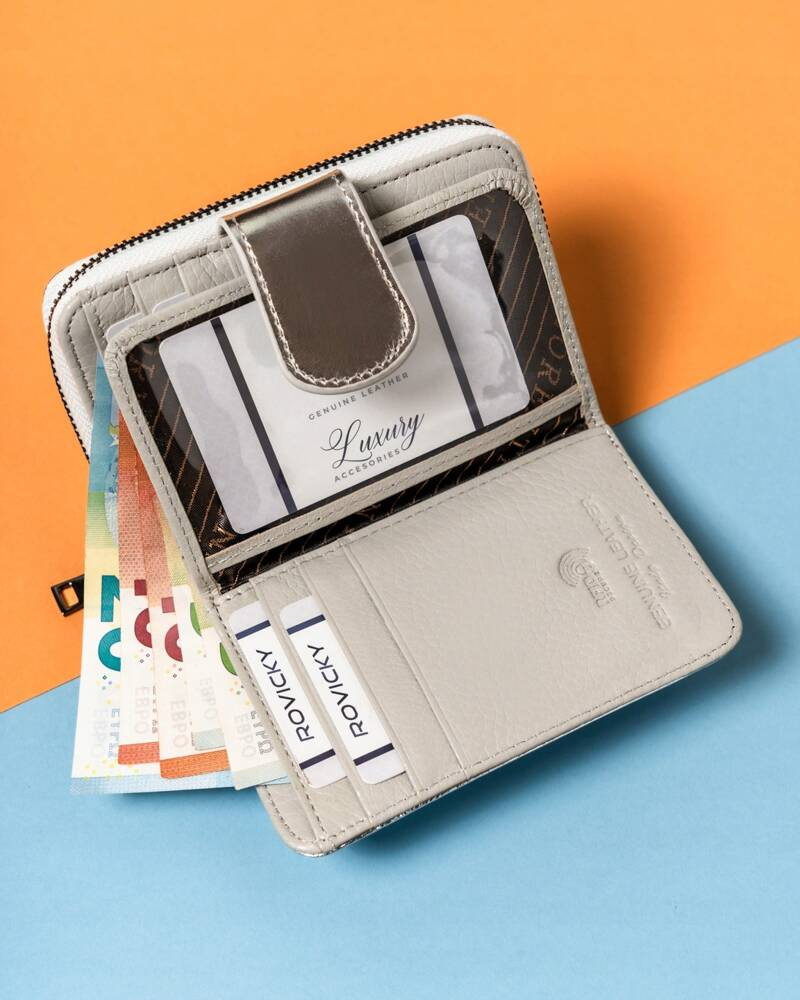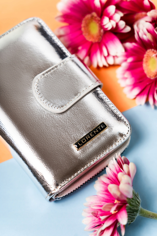 Skórzany portfel damski na zatrzask i suwak – Lorenti