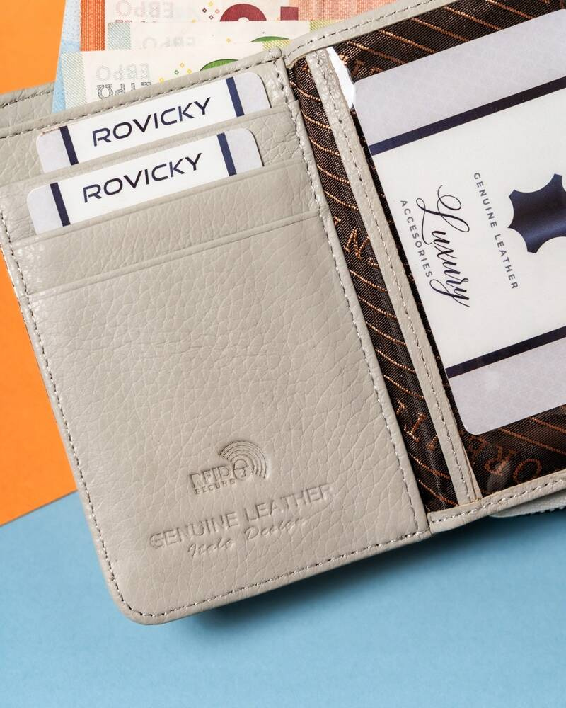 - na banknoty jest przeznaczona 1 otwarta przegródka. Jest odszyta po całej szerokości otwartego portfela, co pozwala zmieścić dużo banknotów.