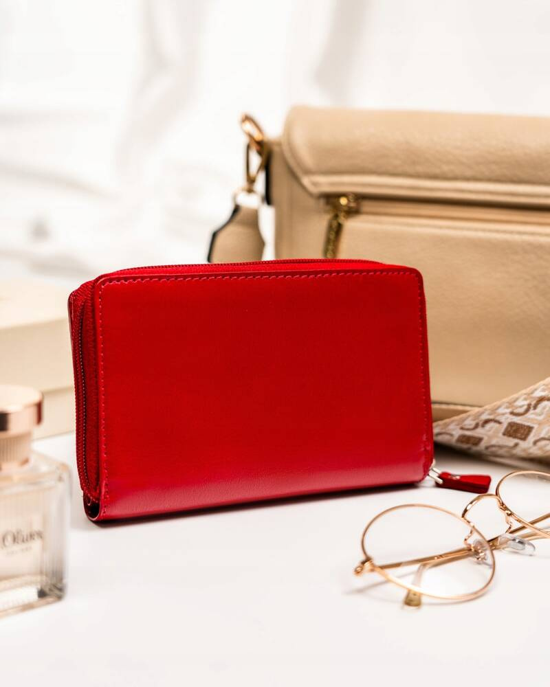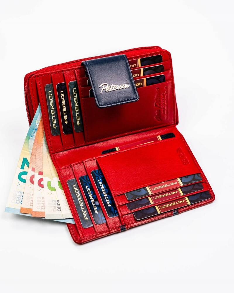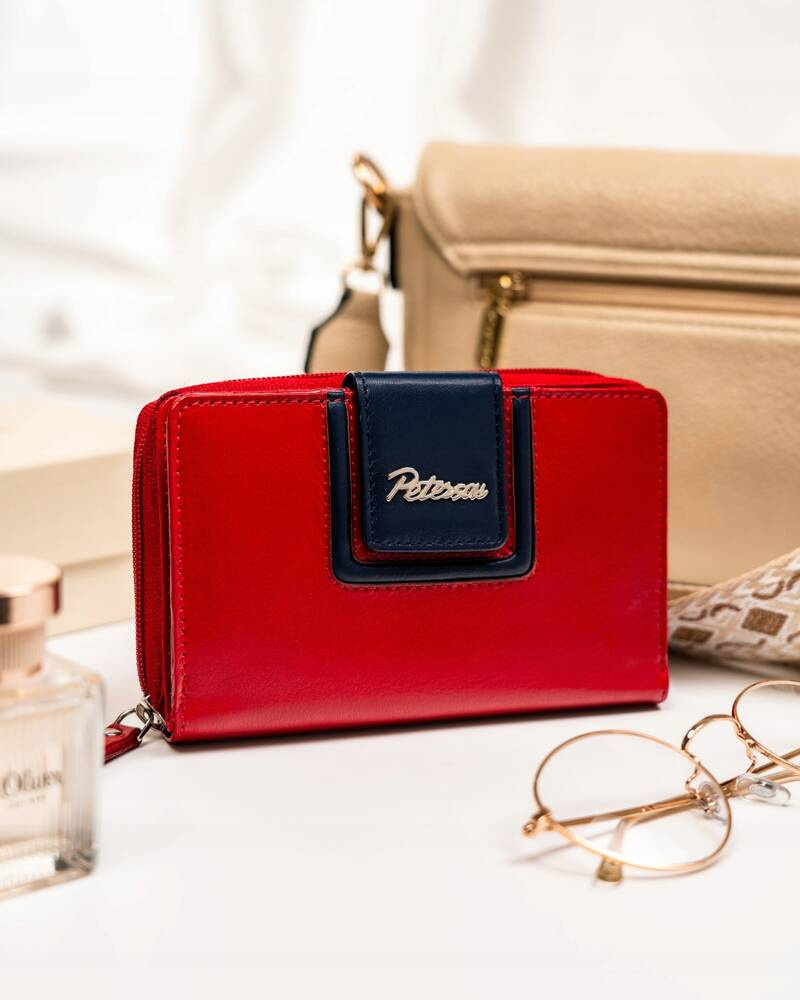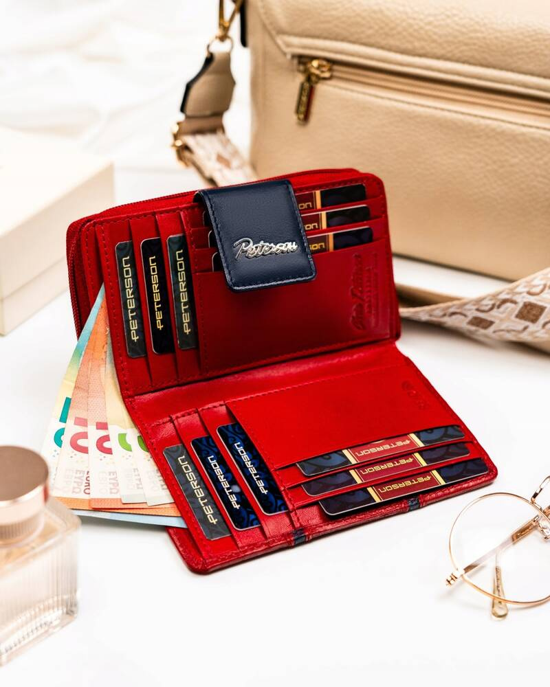 Skórzany portfel damski na zatrzask i suwak – Peterson