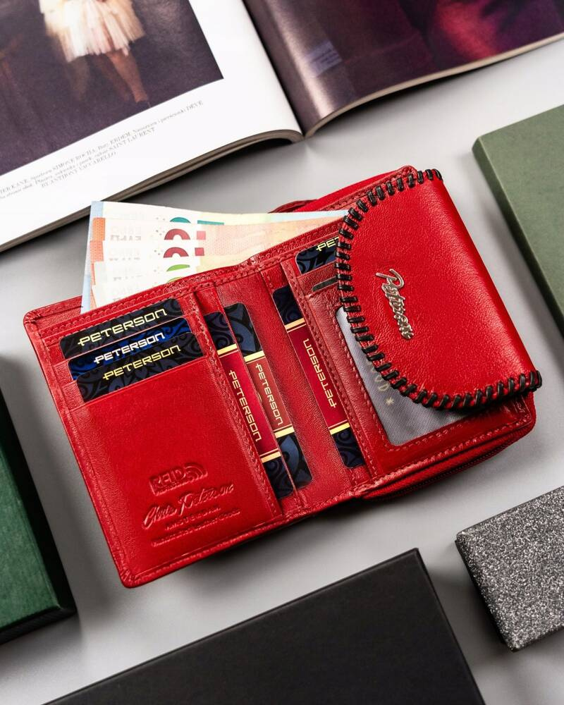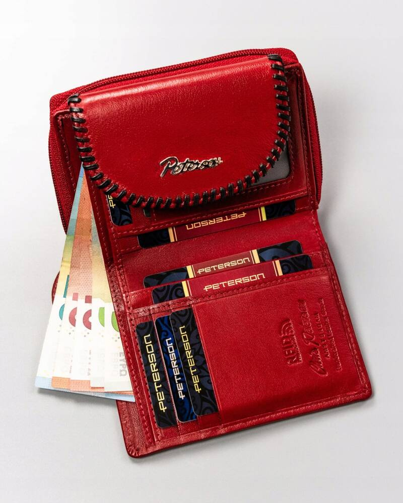 Skórzany portfel damski na zatrzask i zamek – Peterson
