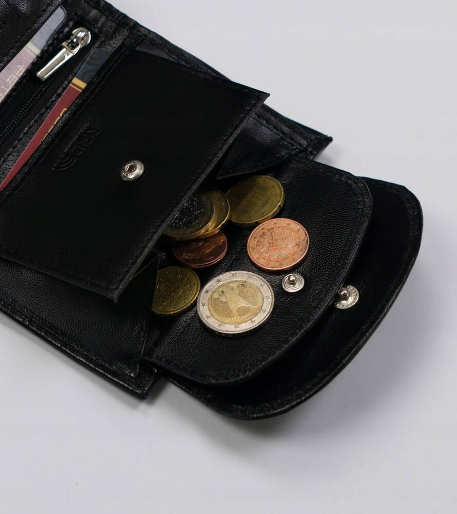 - 1 kieszeń na bilon; zapinana na nap;
