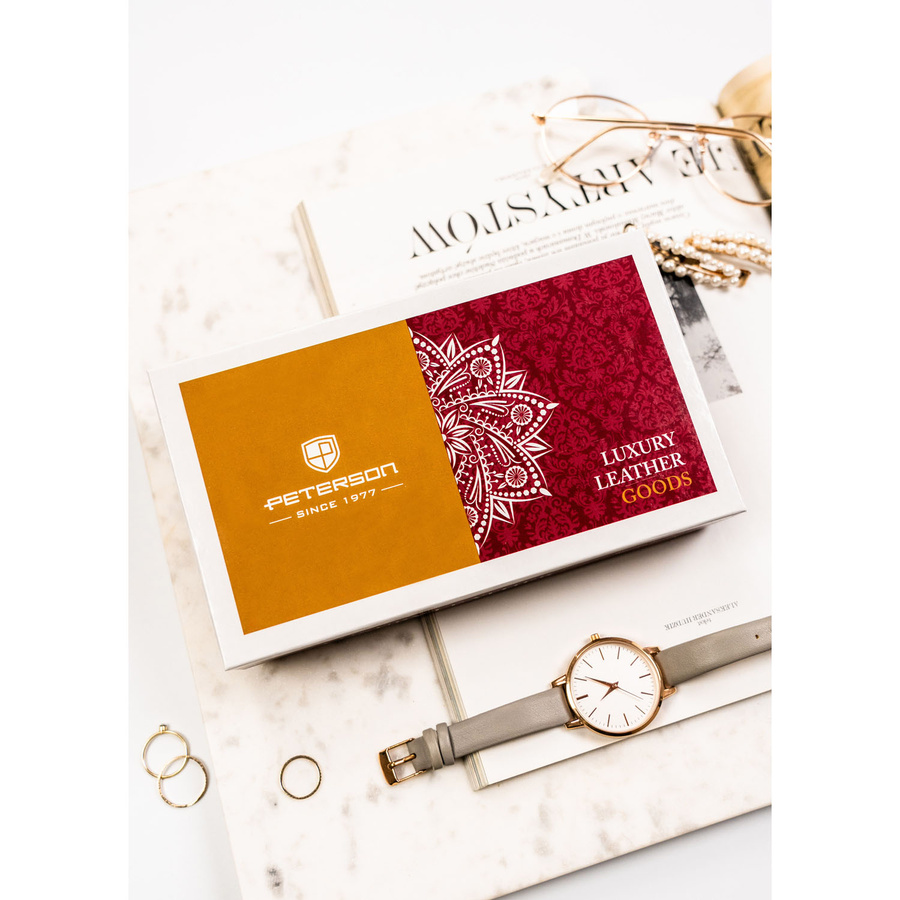 Skórzany portfel damski w czerwonym kolorze zamykany klapką na zatrzask – Peterson