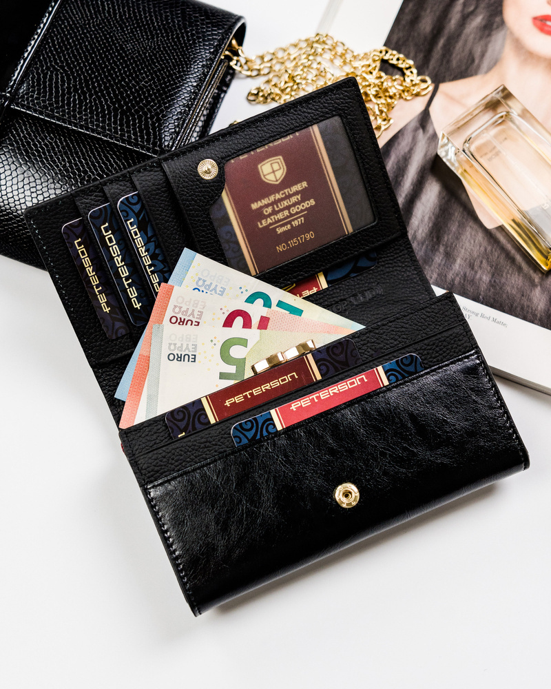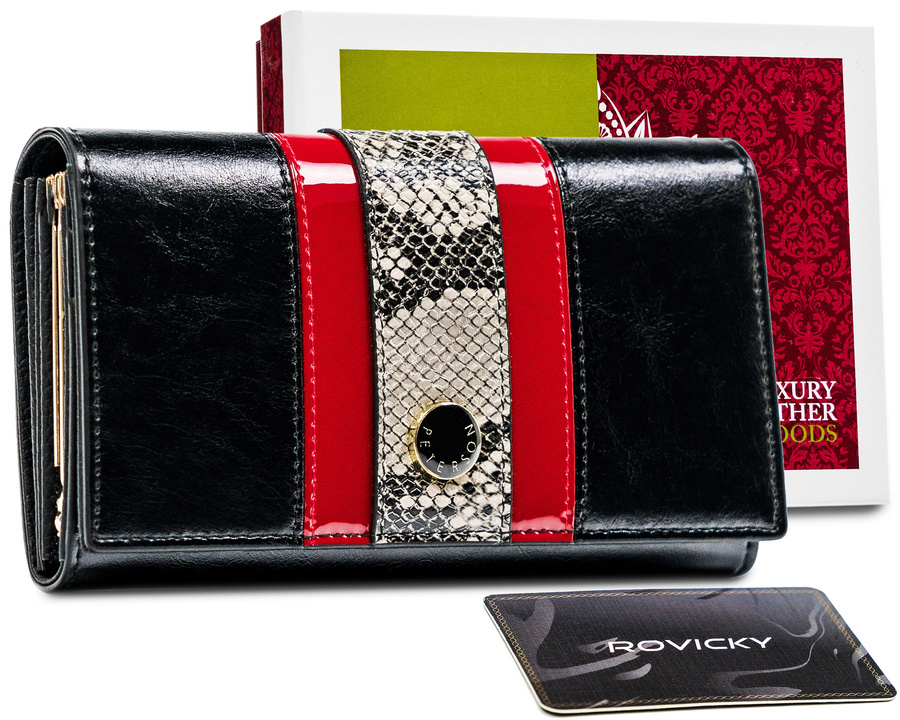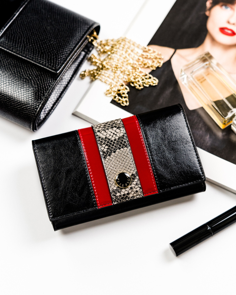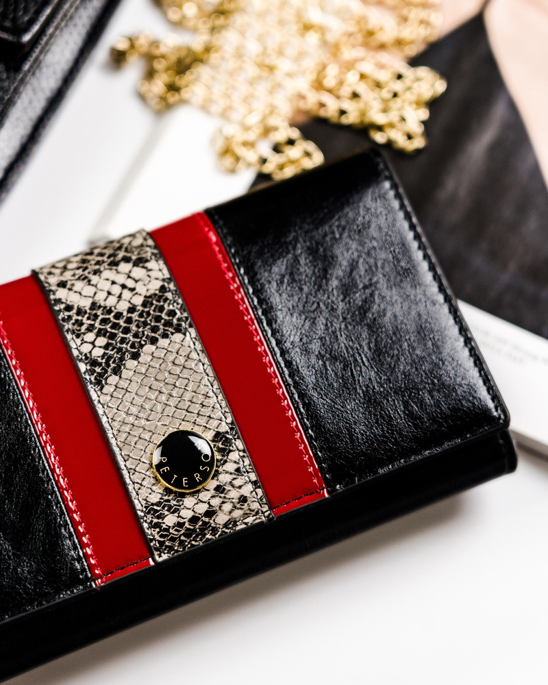 Skórzany portfel damski z motywem wężowej skóry – Peterson