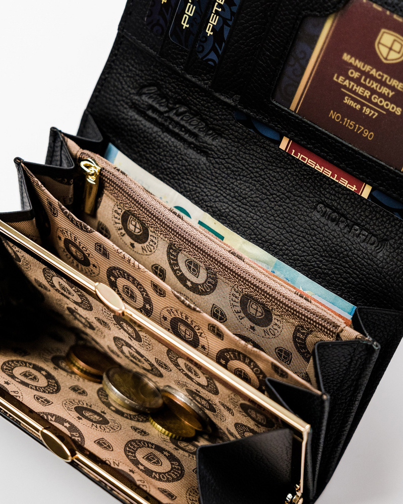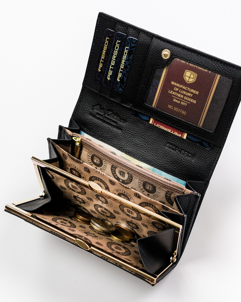Ten modelu jest w stanie pomieścić także pokaźną ilość tradycyjnej gotówki. Kieszenie na pieniądze również wyściełane są odporną na otarcia podszewką.