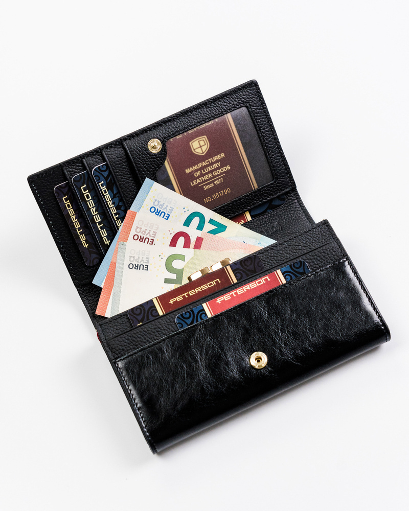 - 5 miejsc na karty płatnicze, wizytówki i dokumenty o standardowym formacie. Jedna z przegródek jest przezroczysta i świetnie nada się na fotografię.