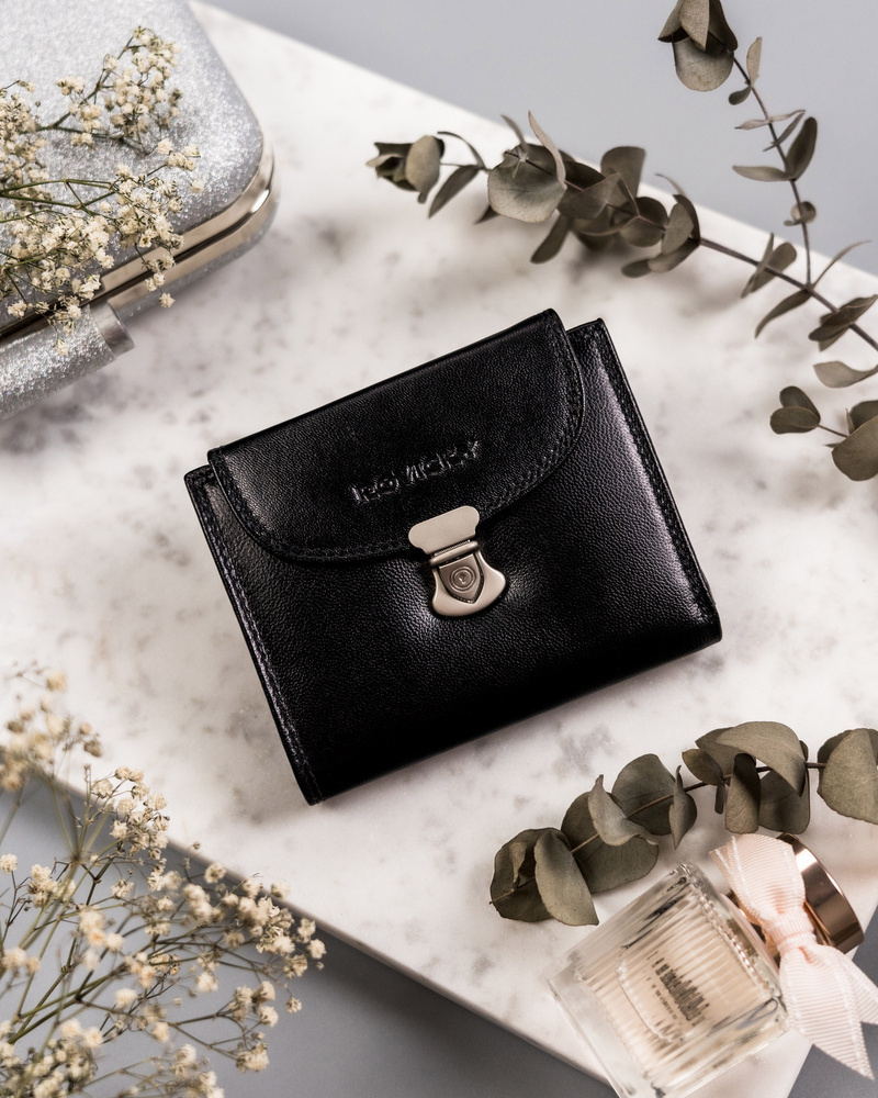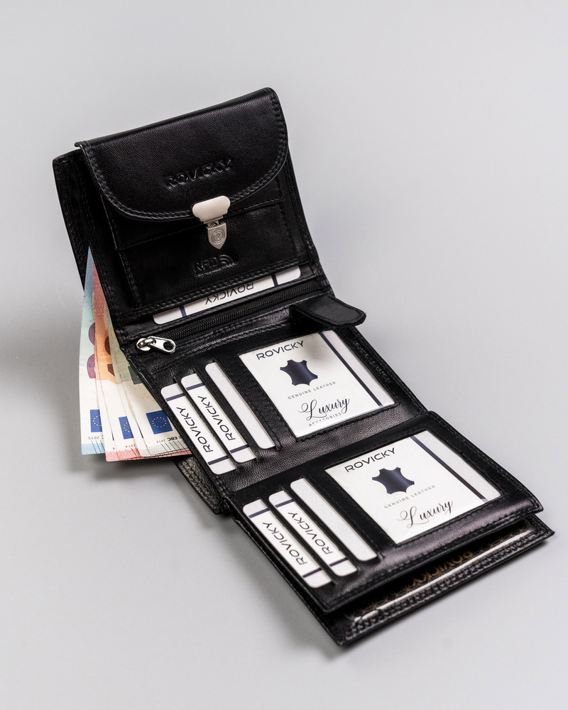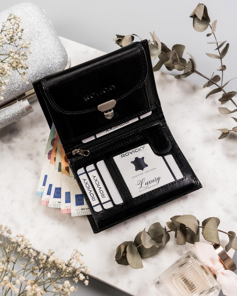 Skórzany portfel damski z ozdobnym zapięciem – Rovicky