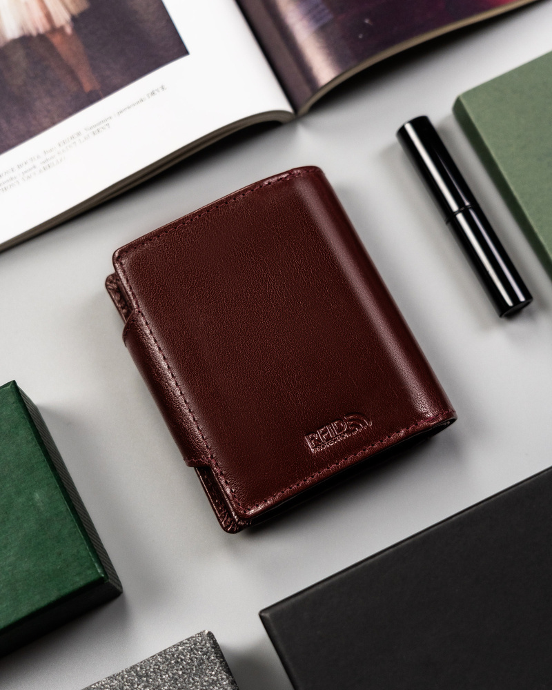 - Idealny na prezent | Portfel zapakowany jest w firmowe pudełeczko z twardej tektury.