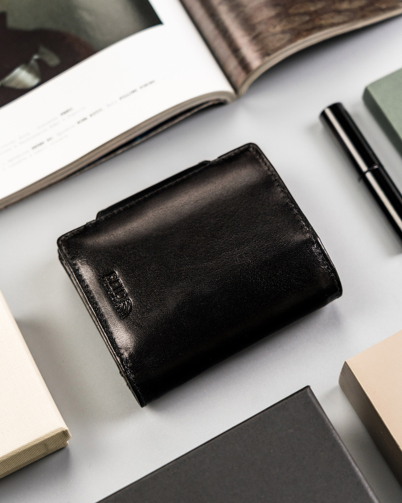 - Idealny na prezent | Portfel zapakowany jest w firmowe pudełeczko z twardej tektury.
