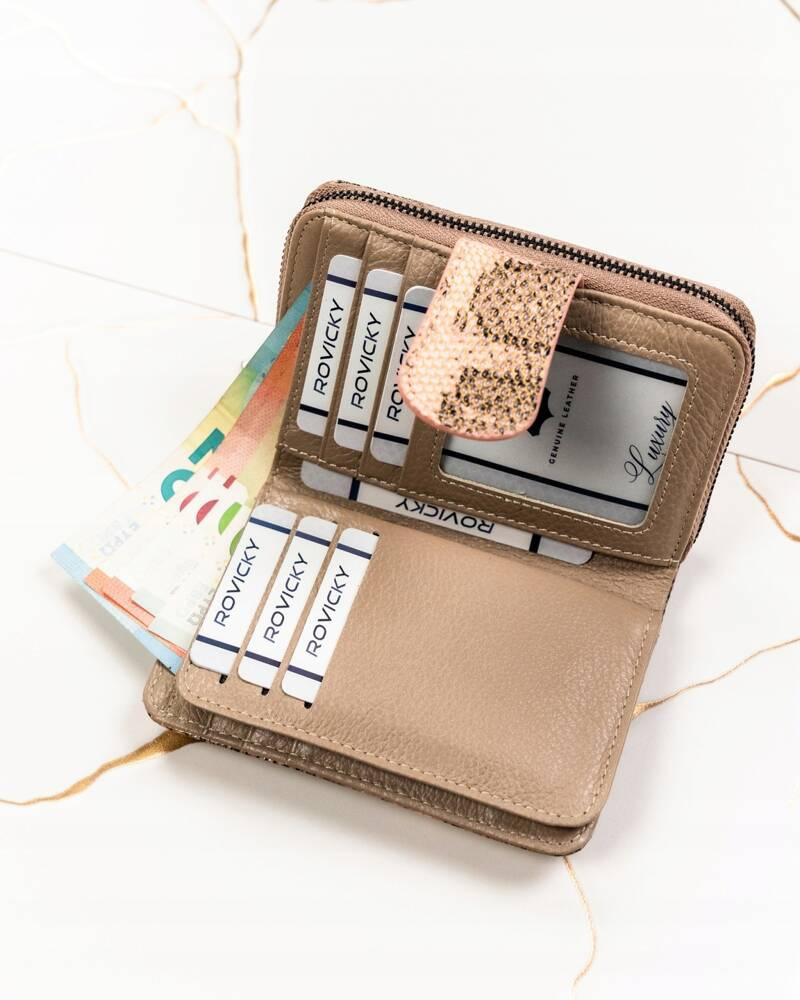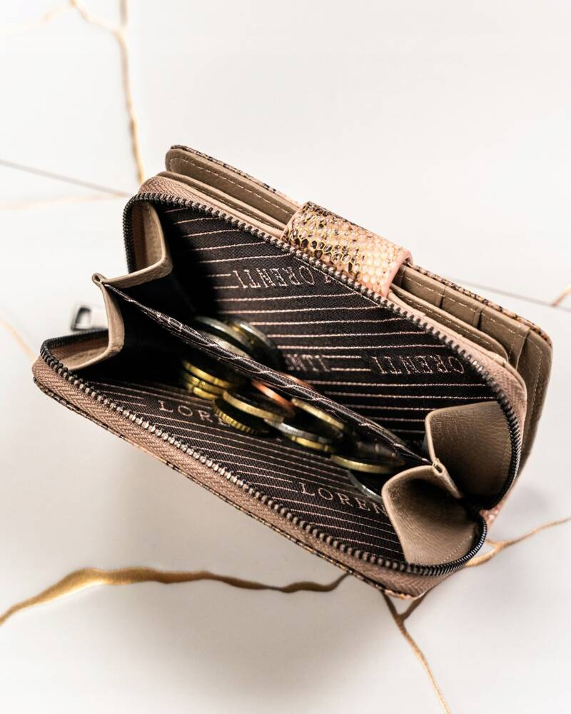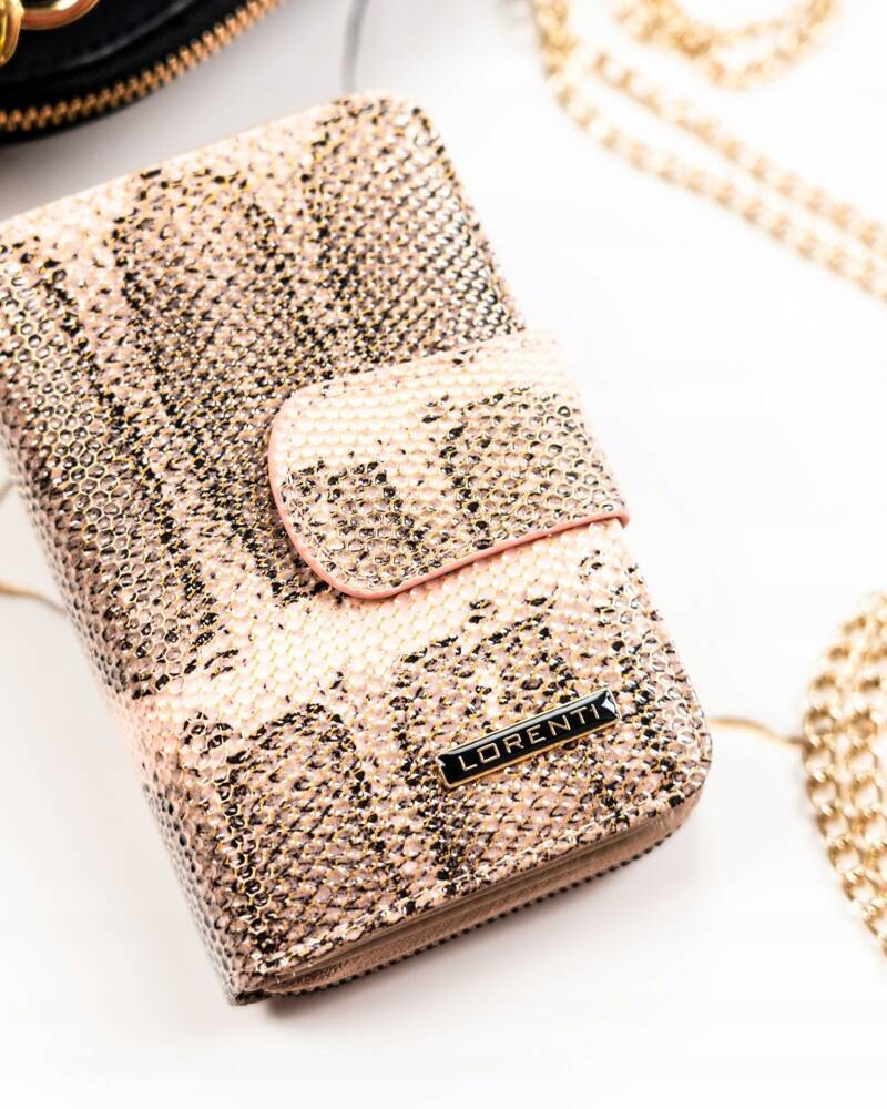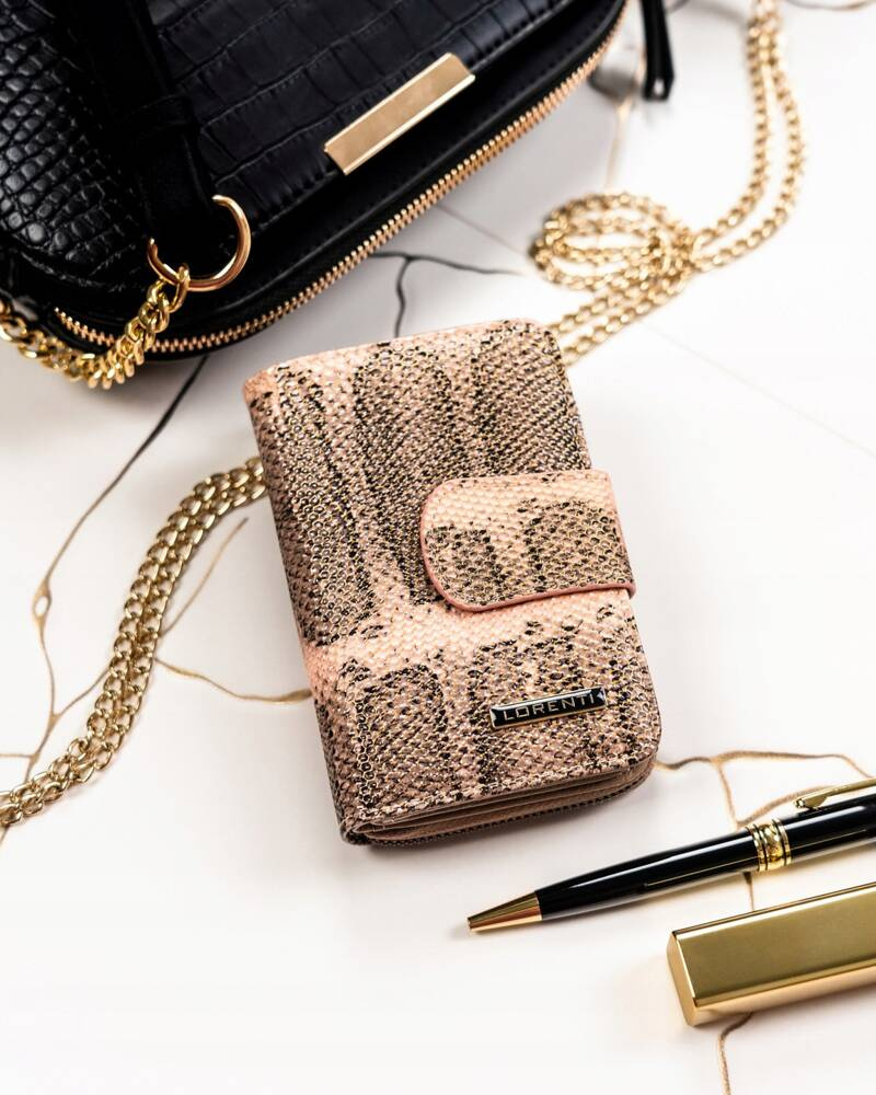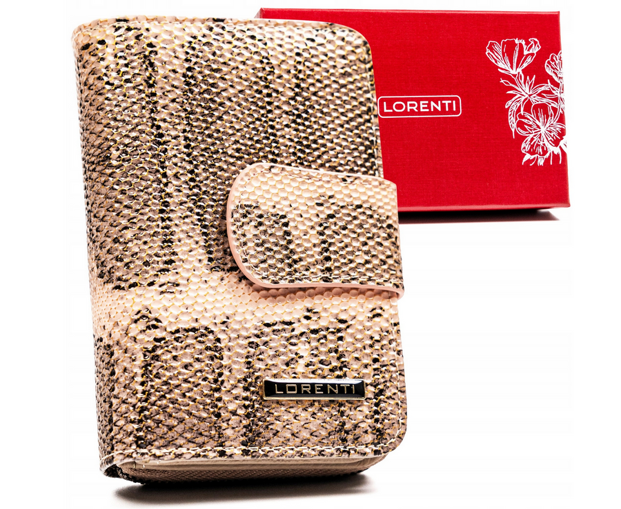 Skórzany portfel damski z systemem RFID Protect, zapinany zatrzaskiem – Lorenti
