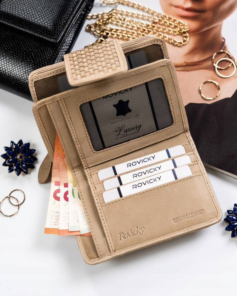 Skórzany portfel damski zamykany na zatrzask – Rovicky
