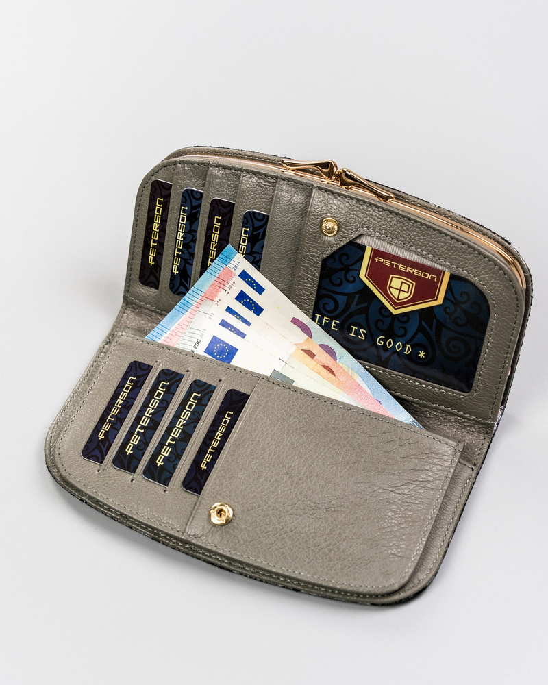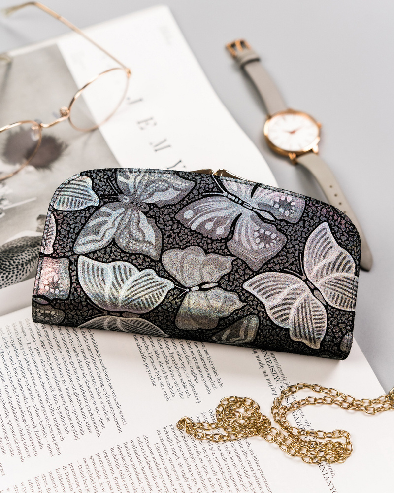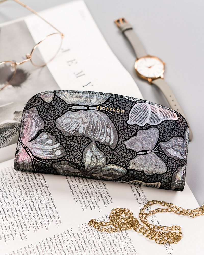 Skórzany portfel damski zdobiony holograficznymi motylami – Peterson